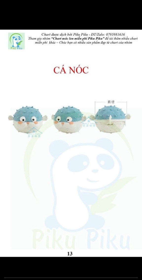 Chart móc len cá nóc đáng yêu cho người mới học