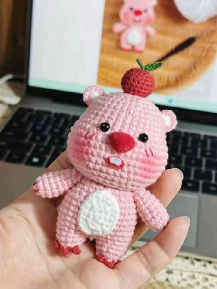 Chart móc len gấu hồng dễ thương với quả dâu trên đầu
