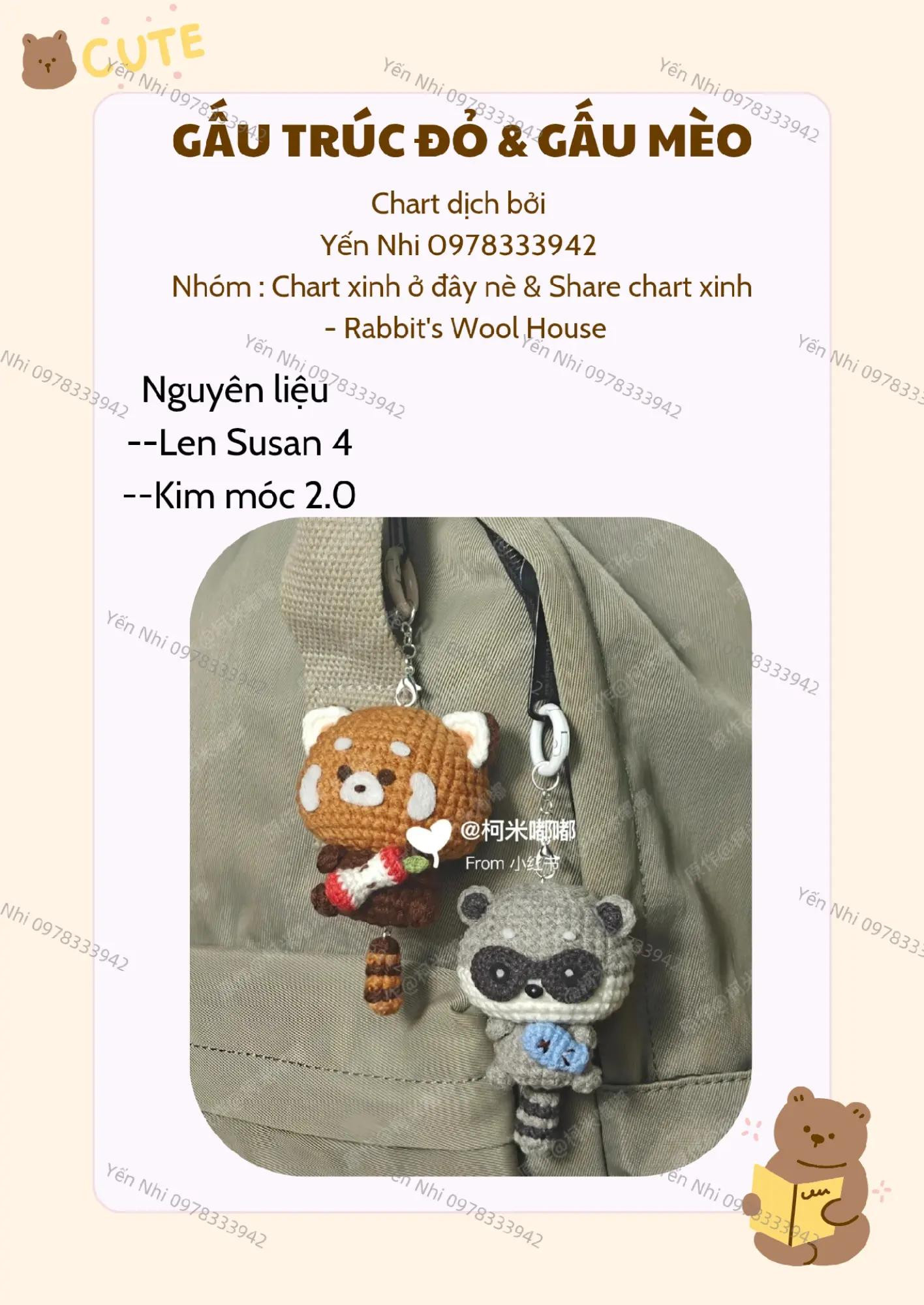 Chart móc len gấu trúc đỏ và gấu mèo siêu dễ thương