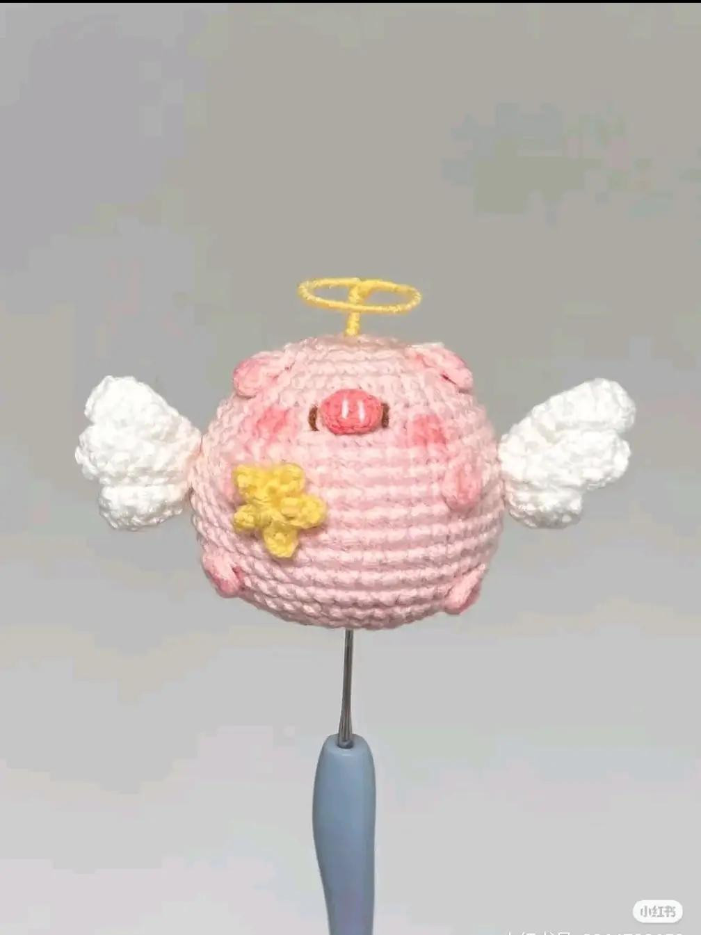 Chart móc len heo thiên thần dễ thương với cánh và vòng hào quang