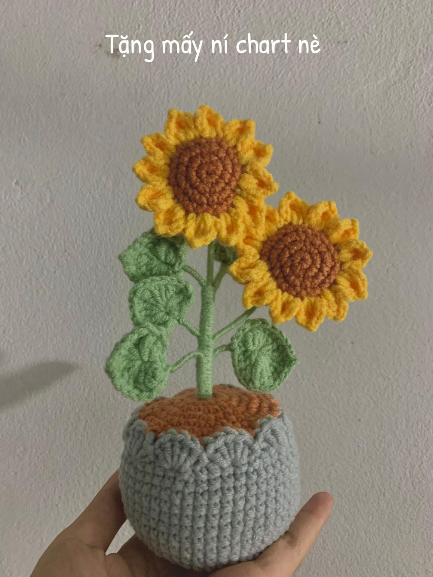 Chart móc len hoa hướng dương trong chậu dễ thương và sinh động