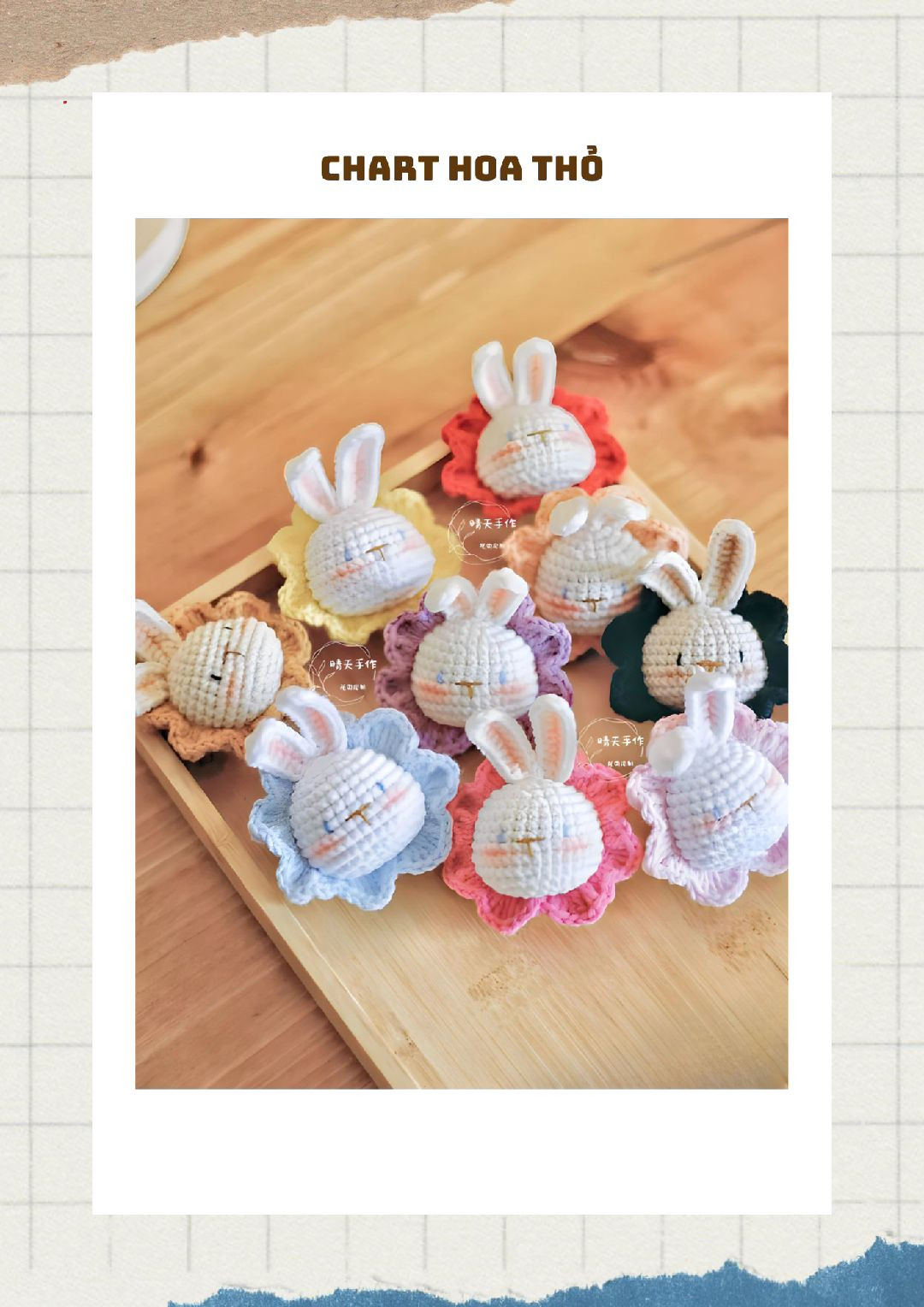 Chart móc len hoa thỏ dễ thương cho người mới bắt đầu