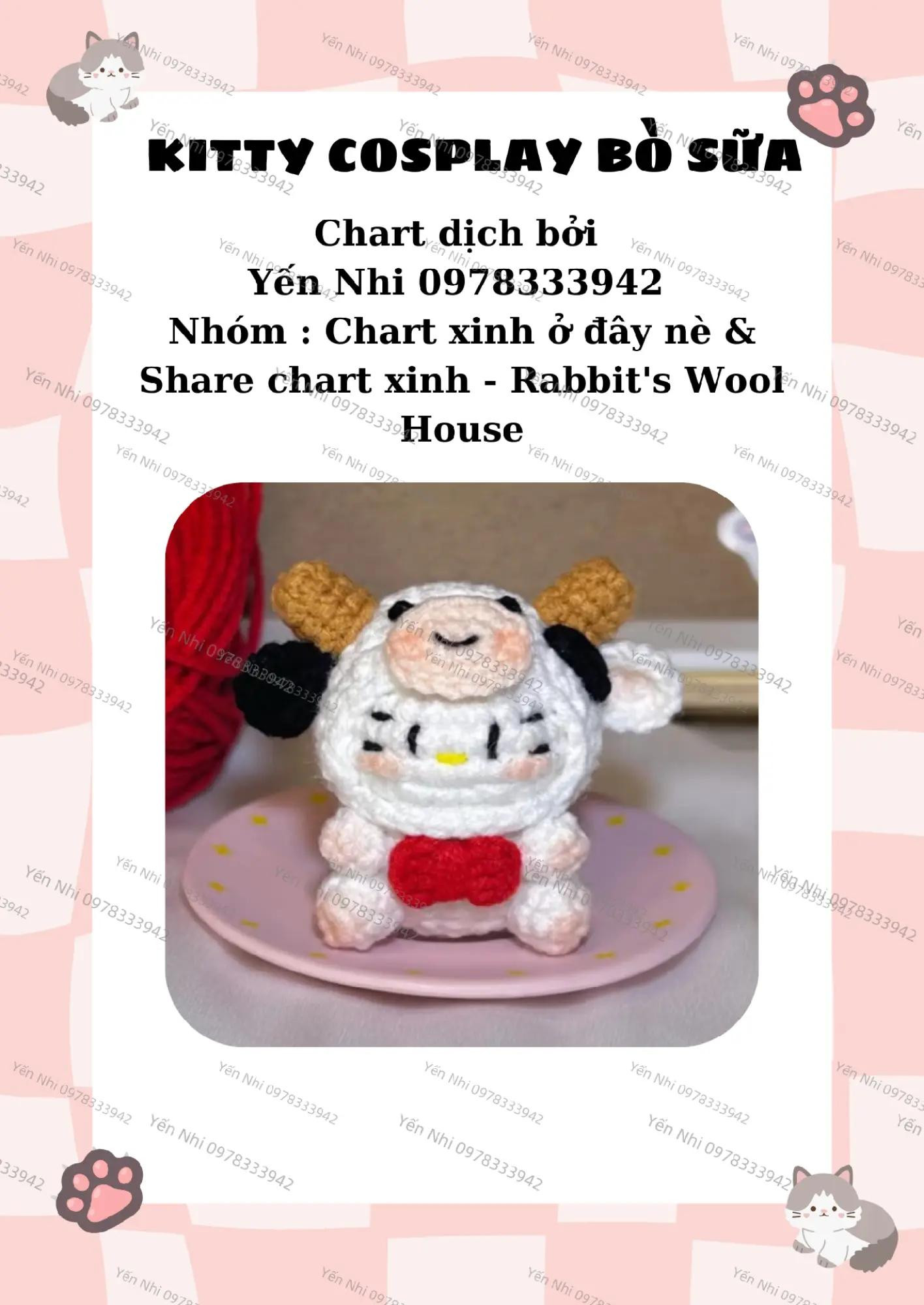 Chart móc len Kitty cosplay bò sữa dễ thương