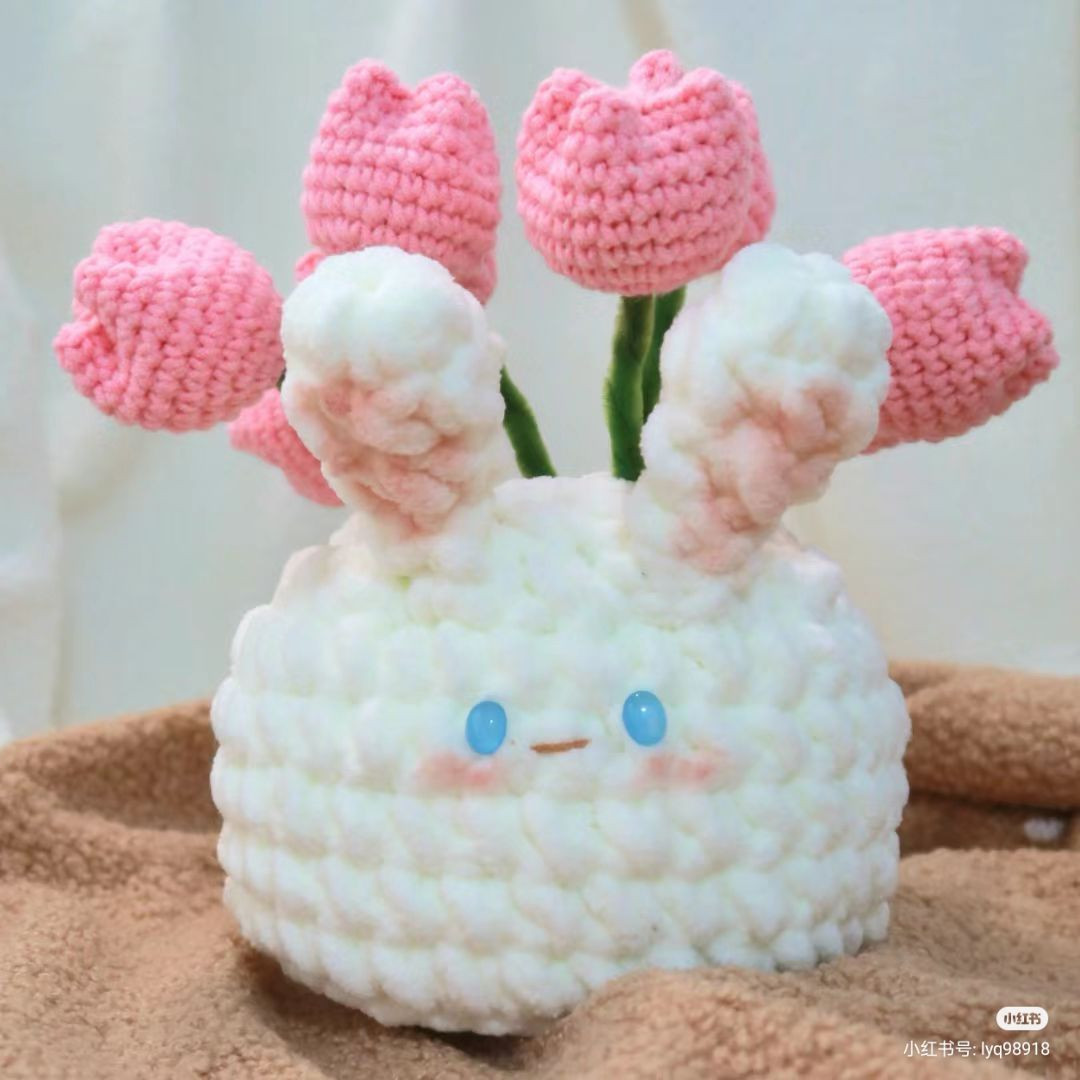 Chart móc len thỏ bông dễ thương với hoa tulip