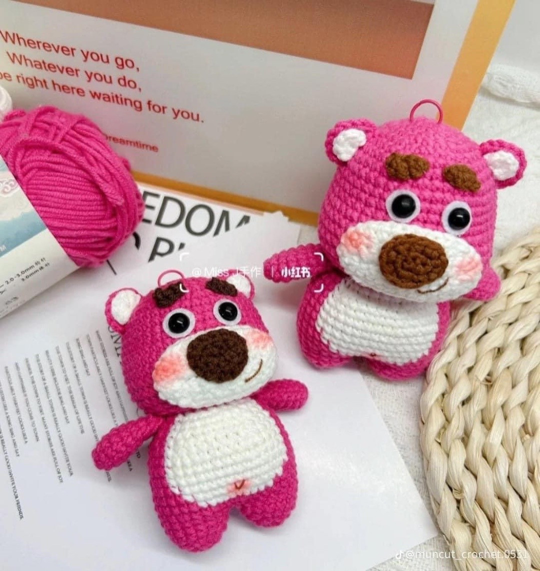 Chart móc len thú bông gấu hồng đáng yêu cho người mới bắt đầu