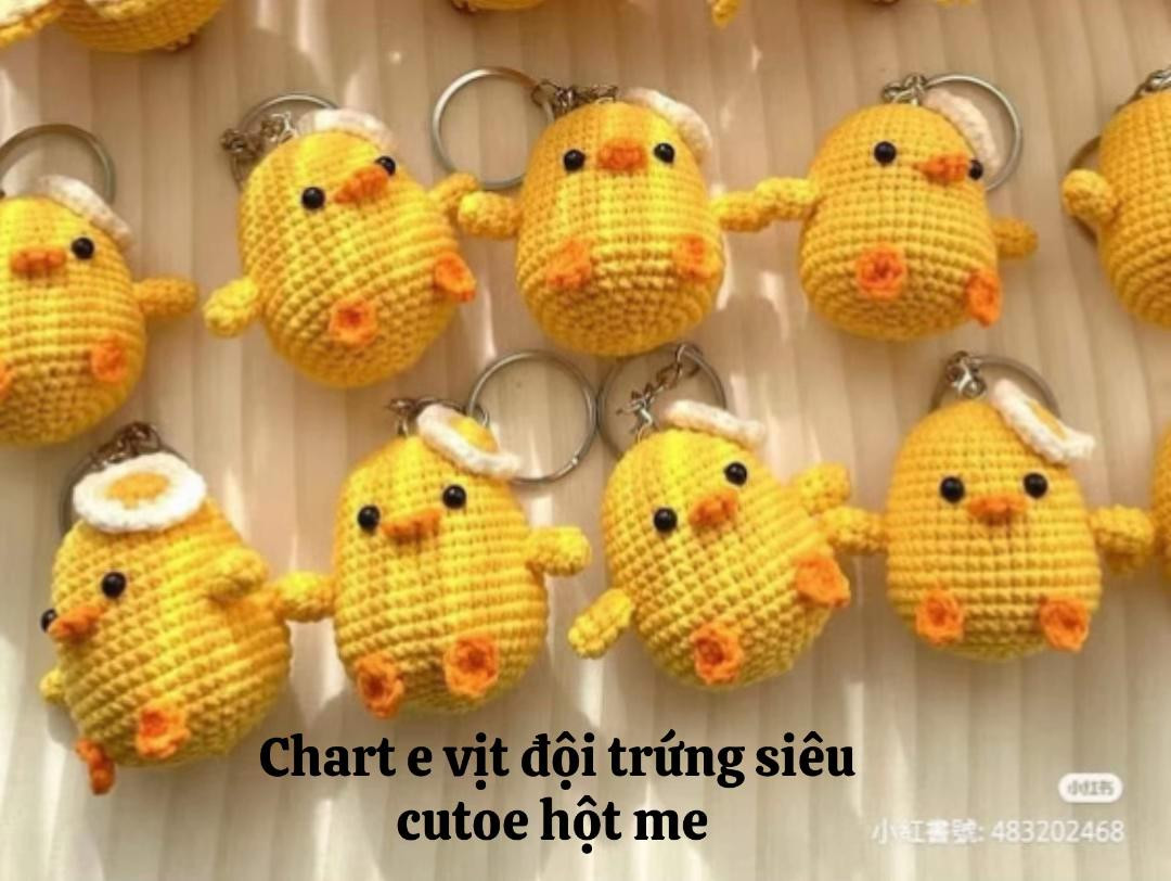 Chart móc len vịt vàng đội trứng đáng yêu cho móc khóa