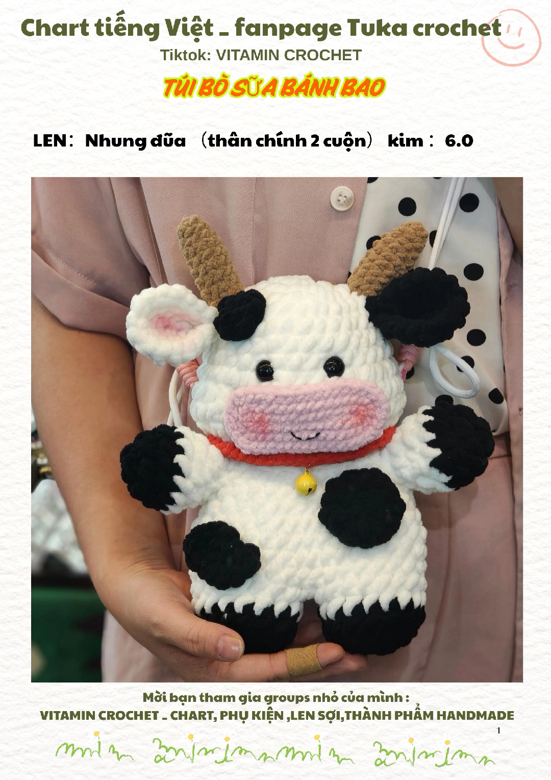 CHART MÓC TÚI BÒ SỮA NÈ QUẨY ĐI NÀO CHỊ E ƠI #crotchet #handmade #chartmoclen #diy #chartdich #chartTiếngViệt #chartmockhoa #chartdichtiengviet #lenhandmade #chartfree #charttui #tuihandmade