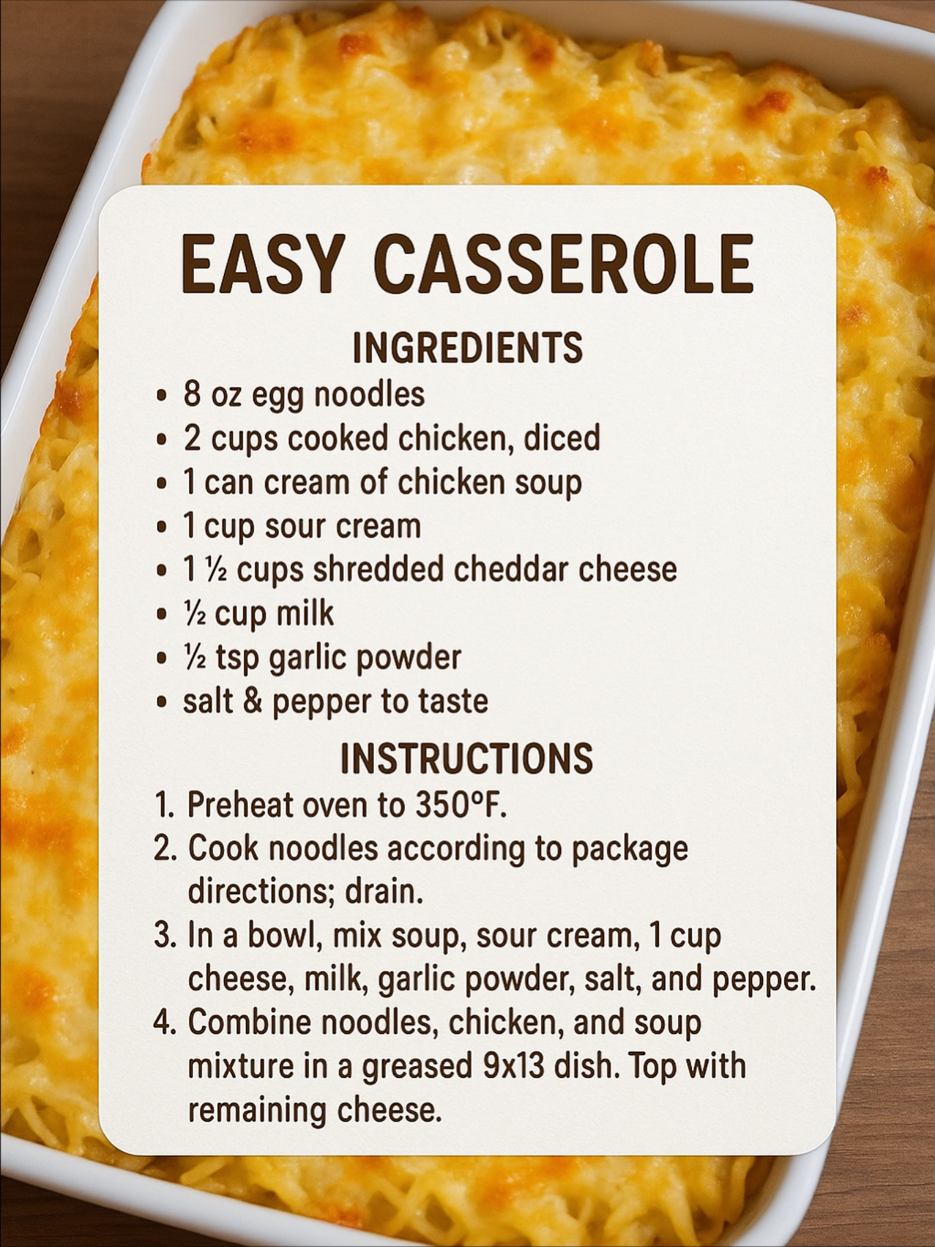 Some nights, dinner doesn’t need to be fancy — it just needs to taste like home. This Easy Casserole is the answer to every “What’s for dinner?” moment that sneaks up between work, homework, and “Mom, where’s my hoodie?” 😅