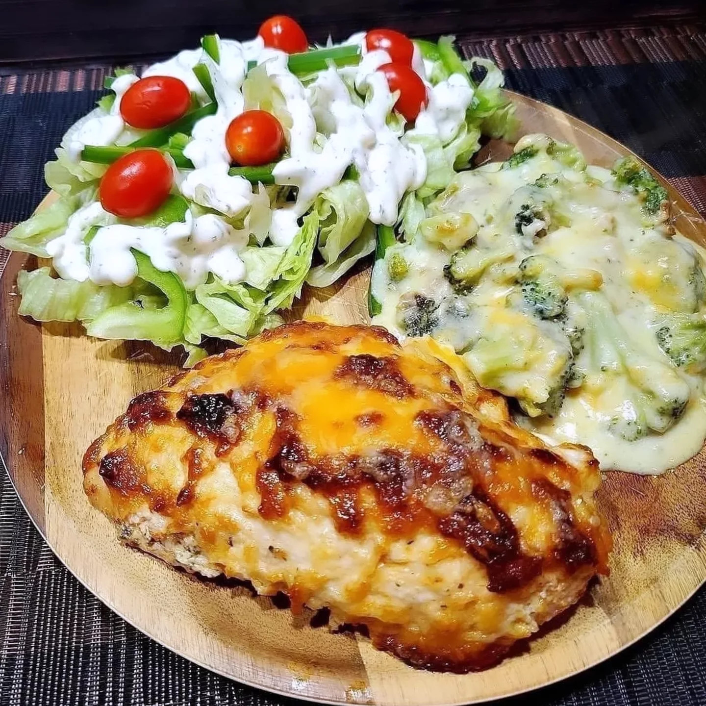 Parmesan Mayo Chicken W/ Creamy Brocolli Bake... ⠀ And a salad 🤣😂 There isn't many dinners where there is no salad.. Lol.....⠀