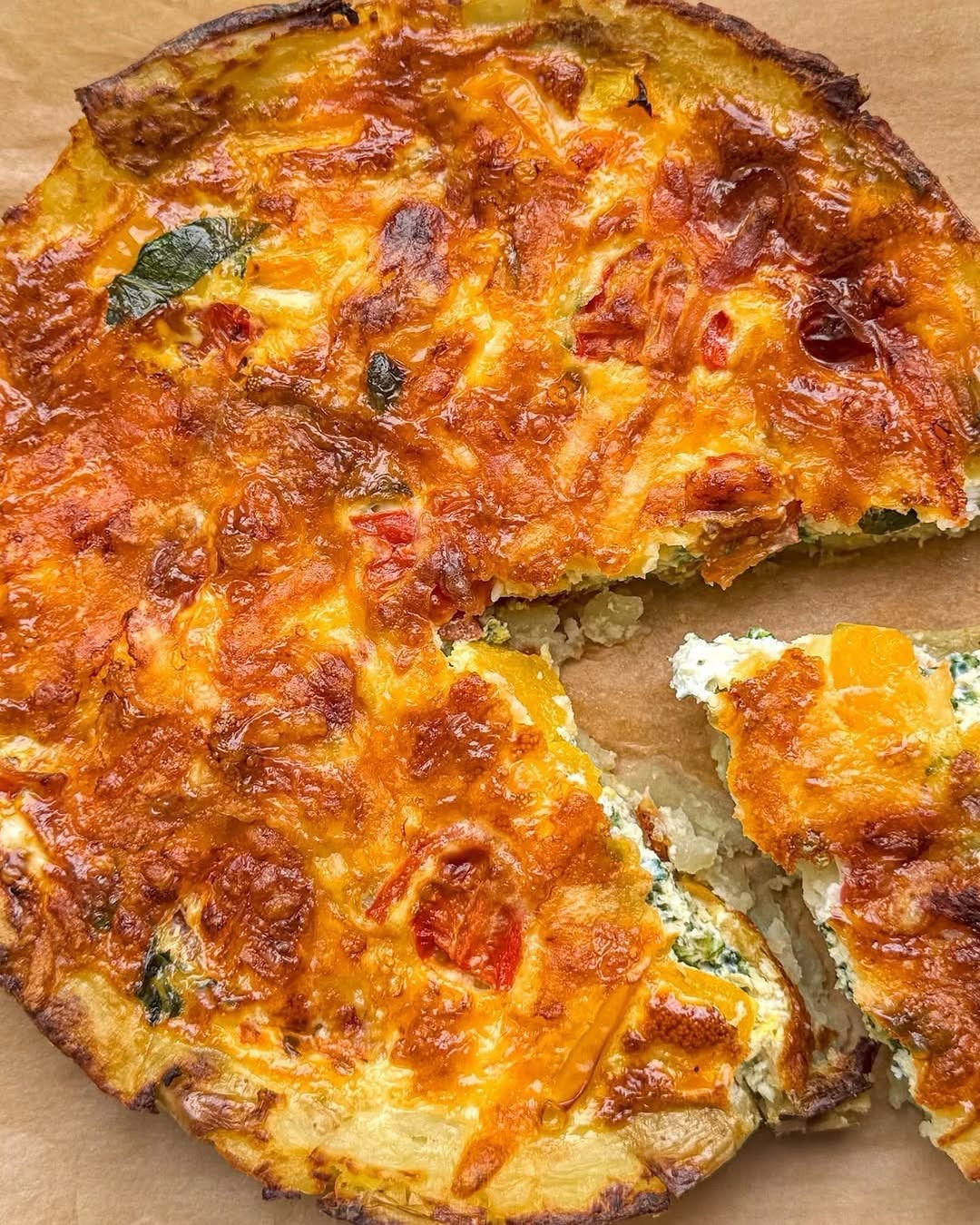 ▪️Preheat oven to 200c ▪️Boil your potatoes until soft ▪️Prepare your 9 inch dish. Add potatoes to the dish and smash them so you sore as and cover the dish ▪️Drizzle some oil over the potatoes and season with salt and pepper ▪️Add the spinach, pepper and tomatoes ▪️Mix the eggs with the milk and pour the mixture over the vegetables. ▪️Top with cheese and bake for 25-30 minutes