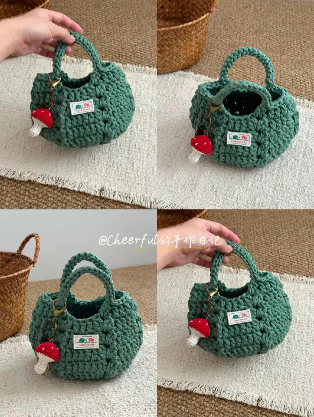 Chic Crochet Handbag with Mushroom Keychain Accent