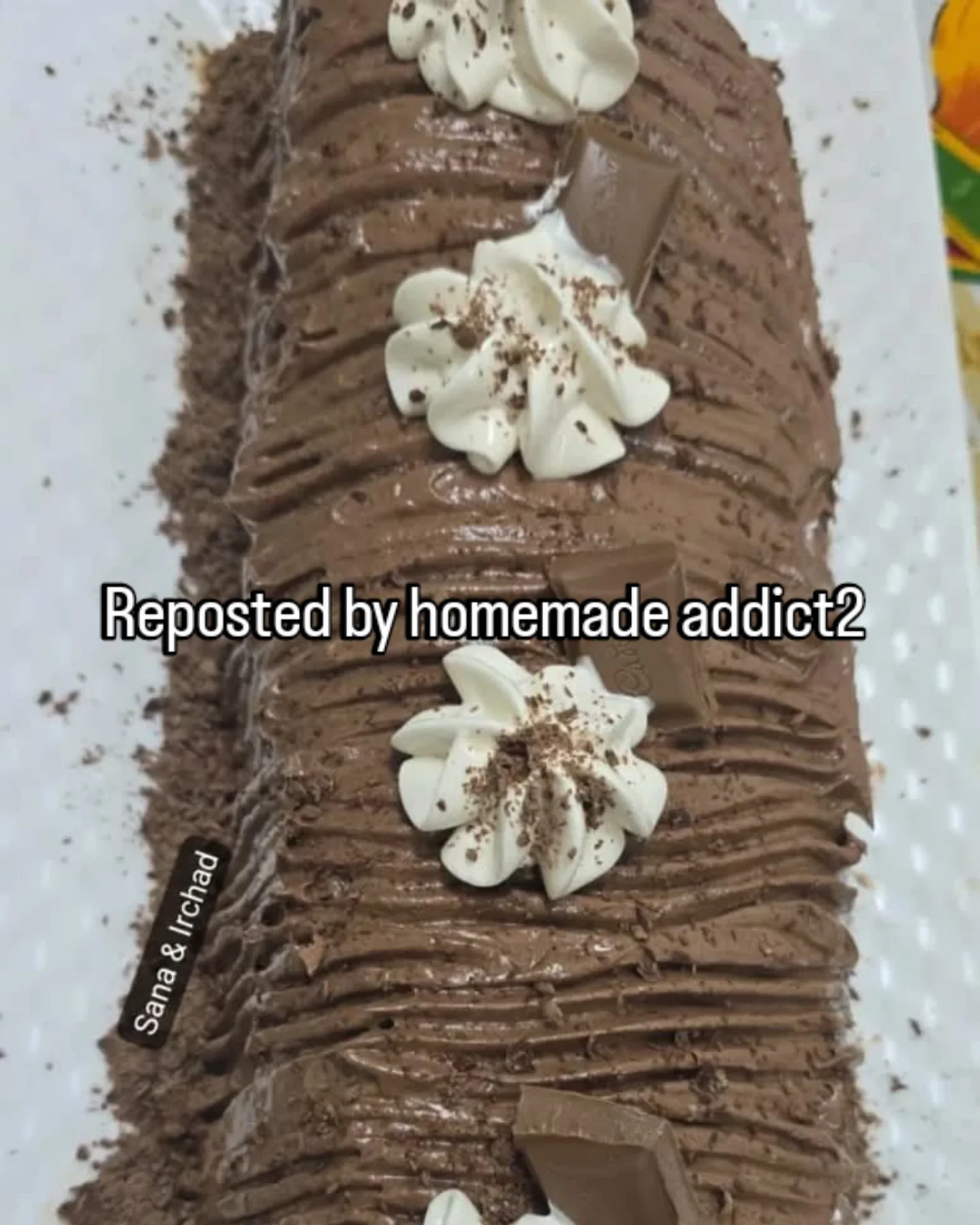 Take a bowl put 200g of soft butter put the condense milk as your taste and cocoa powder beat well and paint the cake inside roll it paint the cake and decorate as your taste and serve... Credits Sana Irchad❣️ #tastytreats #keepitsimplerecipes #trendingpost #eidsweet #eidprep #halal_and_easy_cuisine #halalrecipes #halaal #southafricanfoodies #southafricanblogger #foodie #foodofsa #viralpost#yummy #delicious #allrecipes #quickandeasy #instabake #instagram #blogger #explore #recipe #sharing #save #followerforfollower #foodstyling #dubaibakes #eidza