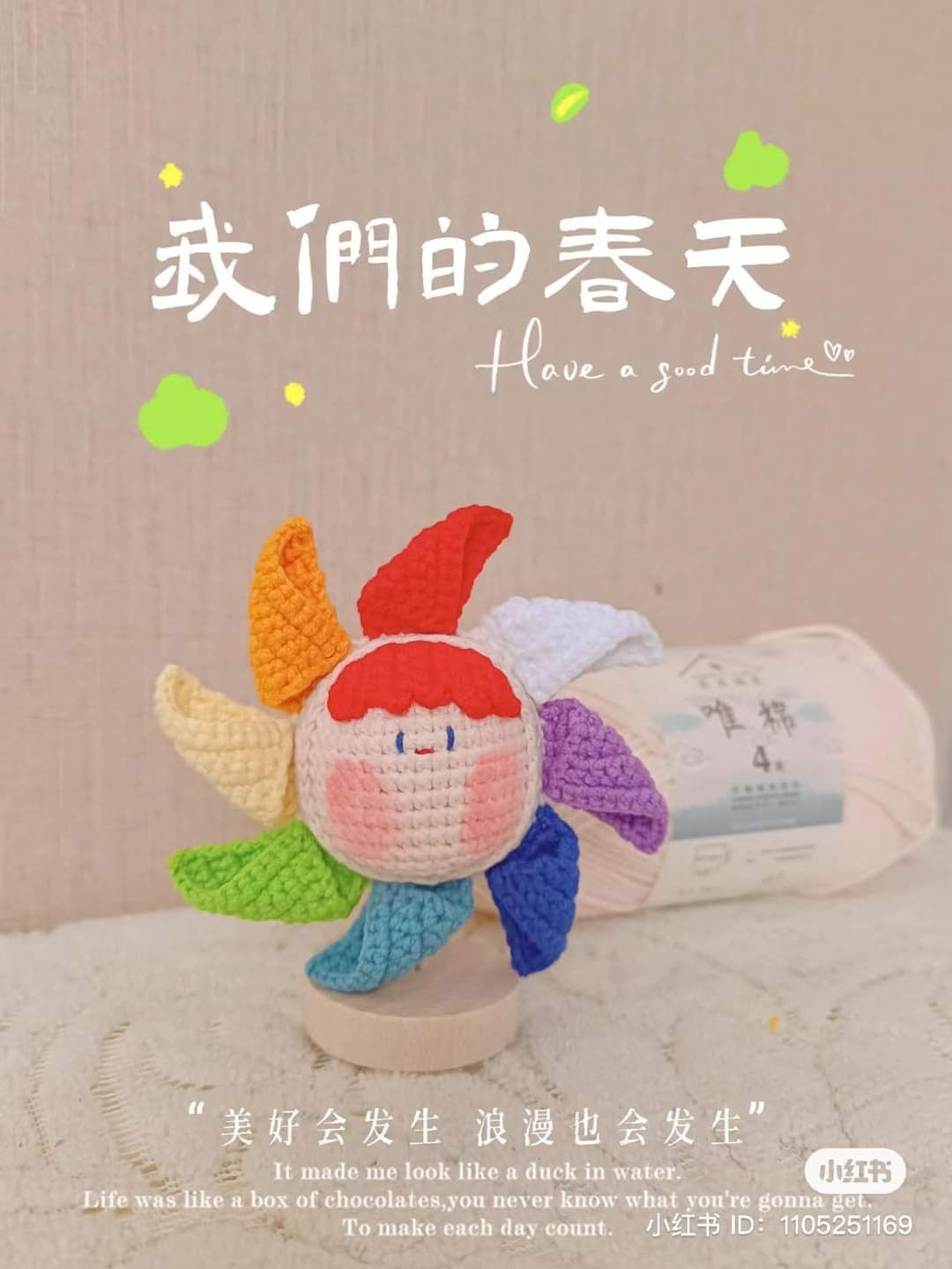 Colorful Crochet Flower with Happy Face for Spring Decor