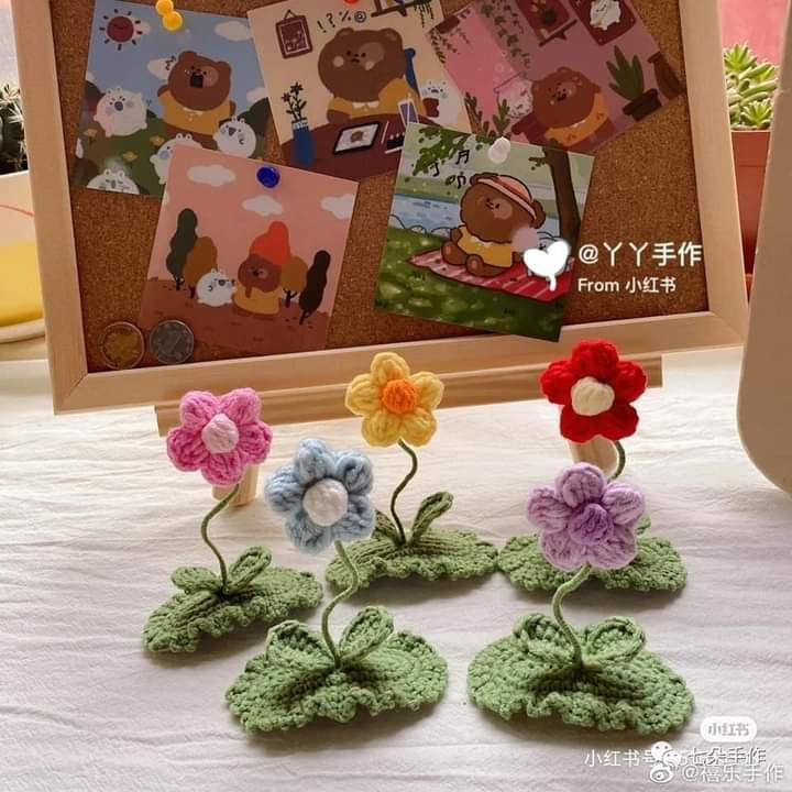 Colorful Crochet Flowers with Green Leaves Pattern Tutorial