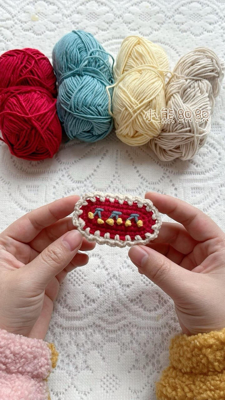 Colorful Crochet Patch with Red, Blue, and Yellow Accent