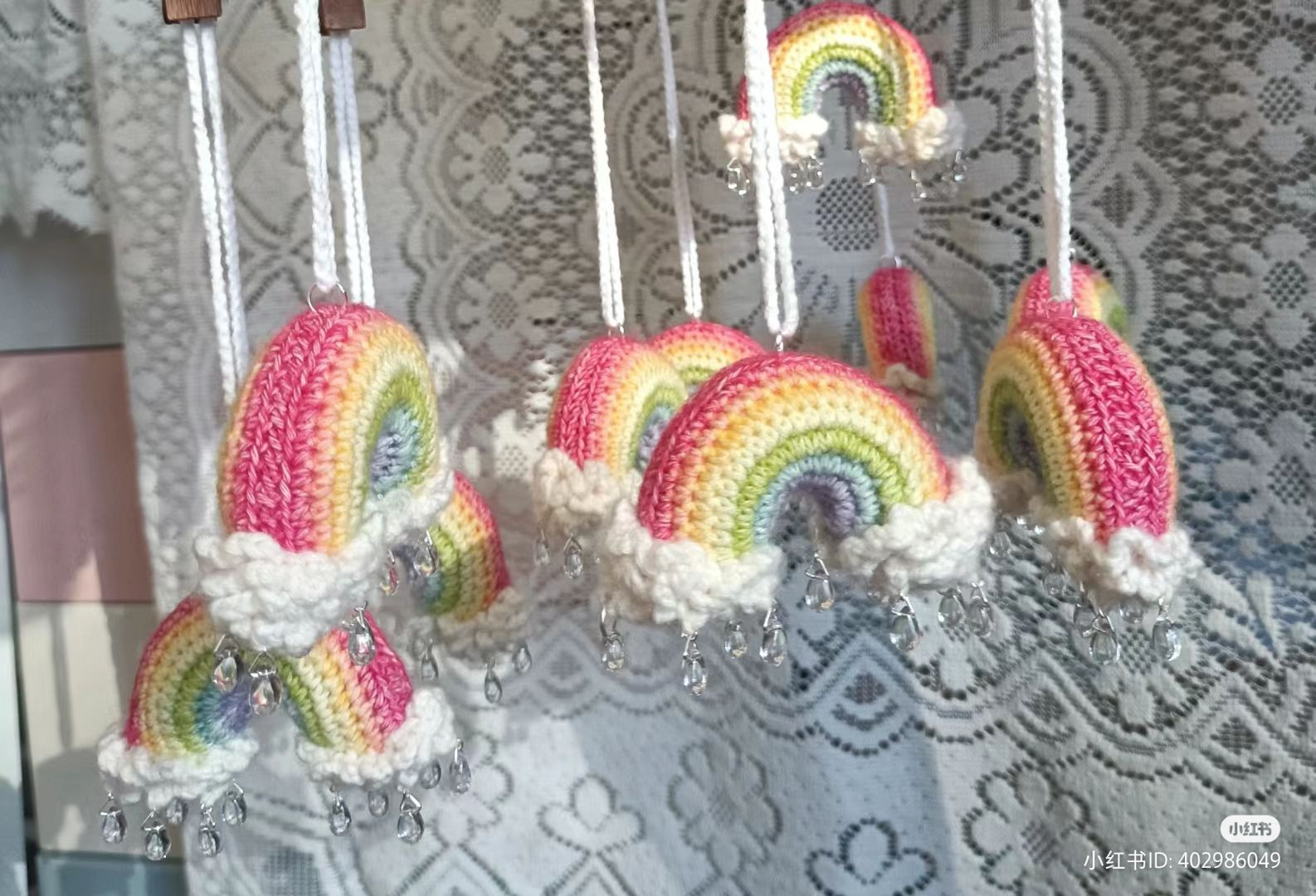 Colorful Crochet Rainbow Charms with Beads and Clouds