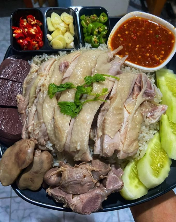 👉🏻CÁCH CHẾ BIẾN MÓN:Cơm gà xối mỡ/luộc kiểu Việt – Thái (Khao Man Gai)🤤🥰🥰 Nguyên liệu: • 1 con gà ta (khoảng 1,2 – 1,5kg) • 500g gạo thơm (gạo tẻ, gạo dẻo vừa) • Mỡ gà hoặc dầu ăn • 1 củ gừng, 1 củ tỏi, 3 củ hành tím • Rau ăn kèm: dưa leo, rau mùi, ớt tươi • Lòng gà, tiết gà (nếu thích) Cách làm: 1. Luộc gà: • Làm sạch gà, xát muối và gừng để khử mùi. • Luộc gà với nước, thêm vài lát gừng + hành tím đập dập, chút muối. • Khi gà chín, vớt ra ngâm nước đá lạnh để da giòn, thịt săn lại. Sau đó chặt miếng vừa ăn. • Phần nước luộc gà giữ lại để nấu cơm và nấu canh. 2. Nấu cơm gà: • Vo gạo, để ráo. • Phi thơm hành tím, tỏi băm với mỡ gà, cho gạo vào xào sơ. • Cho gạo vào nồi, đong nước từ nước luộc gà (tỉ lệ như nấu cơm bình thường). • Có thể thêm 1 ít muối và lá dứa (nếu có) cho cơm thơm. 3. Luộc lòng, tiết: • Lòng gà, tiết rửa sạch, luộc chín với nước gừng + muối. • Thái miếng vừa ăn, bày chung với gà. 4. Làm nước chấm (kiểu Thái/Việt): • Nguyên liệu: 2 thìa canh nước tương, 1 thìa canh giấm gạo hoặc chanh, 1 thìa canh đường, ớt tươi băm, gừng băm, tỏi băm, hành tím phi, chút dầu mè. • Trộn đều, nêm lại cho có vị mặn – chua – cay – ngọt hài hòa. • Nếu thích kiểu Thái, có thể cho thêm tương hột xay nhuyễn để nước chấm đậm vị hơn. 5. Trình bày: • Cho cơm ra đĩa, xếp gà, lòng, tiết, dưa leo bên cạnh. • Rưới chút nước mỡ gà lên cơm cho bóng đẹp. • Dùng kèm nước chấm và canh gà nấu từ nước luộc.
