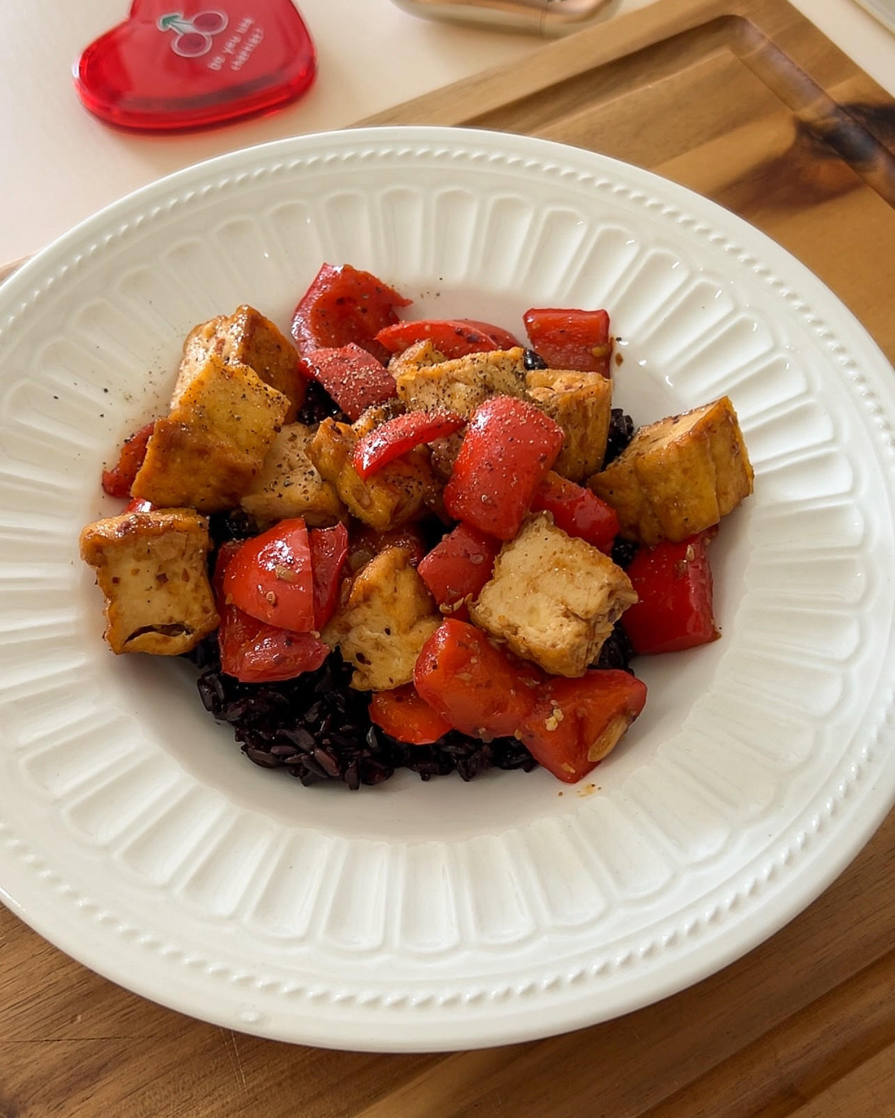 Cơm lứt đậu hũ xào ớt chuông - 385 calo✨