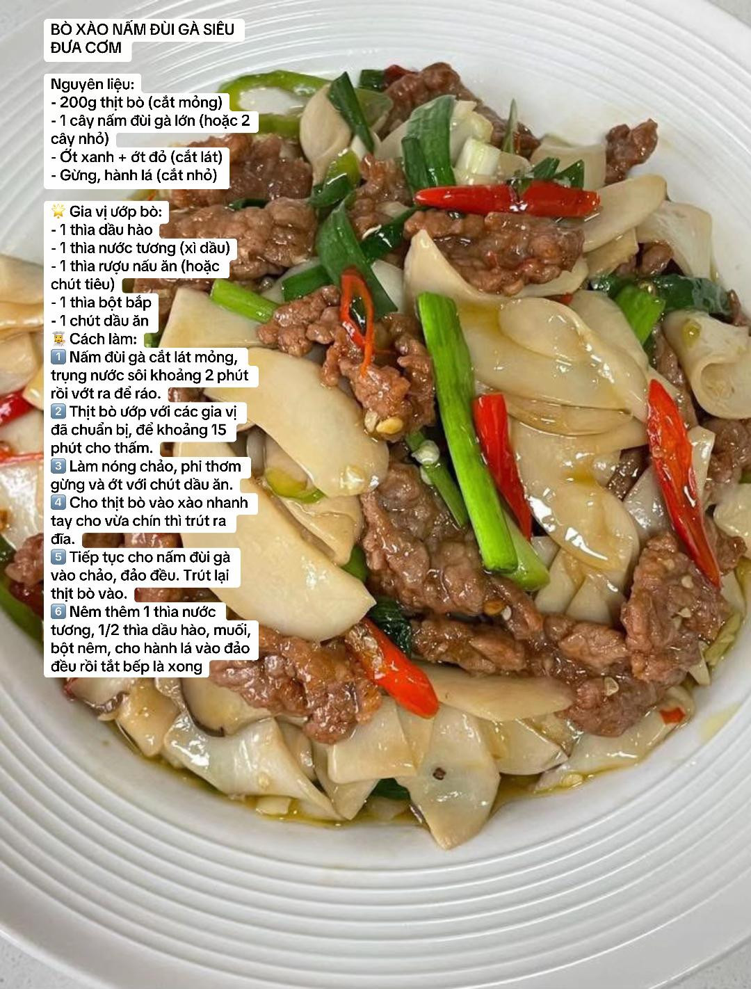 Món này xào lên thơm lừng, thịt bò mềm, nấm giòn ngọt, ăn kèm cơm trắng là hết sẩy luôn đó mọi người ơi!!!