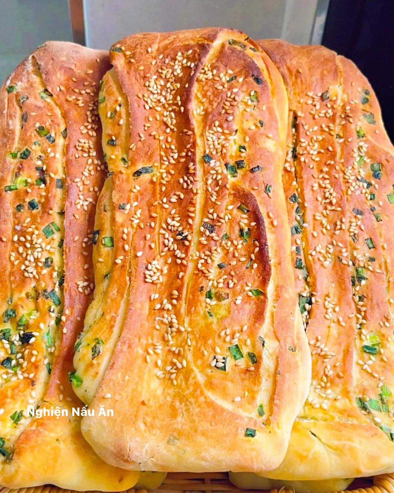 CÔNG THỨC LÀM BÁNH BÁNH NƯỚNG HƯƠNG HÀNH THƠM NGON GIÒN RỤM BÊN NGOÀI, MỀM XỐP BÊN TRONG. Nguyên liệu - 500g bột mì - 5g men nở - 5g bột nở (baking powder) - 20g đường - 1 quả trứng - 10g mỡ lợn - 5g muối - 250g nước - Hành lá cắt nhỏ - Hỗn hợp dầu cán lớp: 50g bột mì + 60g dầu - Mè trắng (vừng trắng) Cách làm chi tiết Trộn bột - Đập trứng vào tô. - Thêm men nở, bột nở, đường, mỡ lợn, muối và nước. - Khuấy đều. - Cho bột mì vào, nhào đến khi thành khối mịn. - Để bột nghỉ 10 phút cho bột đàn hồi. Chuẩn bị hỗn hợp dầu - Trộn 50g bột mì + 60g dầu thành hỗn hợp sệt. - Đây là lớp “dầu cán” giúp bánh tạo nhiều lớp giòn. Cán bột & tạo lớp - Cán khối bột đã nghỉ thành hình chữ nhật. - Phết hỗn hợp dầu lên toàn bộ mặt bột. - Rắc thêm chút bột mì, muối, hạt tiêu. - Rải hành lá cắt nhỏ lên trên. - Gấp bột từ trên xuống dưới như gấp thư. Tạo hình bánh - Cắt khối bột đã gấp thành các phần bằng nhau. - Lấy 2 phần xếp chồng lên nhau. - Dùng đũa ấn mạnh vào giữa để tạo rãnh. - Kéo giãn nhẹ rồi cán mỏng lại bằng cán bột. → Đây là bước tạo hình giúp bánh nở phồng và có nhiều lớp. Ủ lần 2 - Xịt nước nhẹ lên mặt bánh. - Rắc mè trắng. - Bọc kín bằng màng bọc thực phẩm. - Ủ đến khi bánh nở gấp đôi. Nướng bánh - Làm nóng lò trước 220°C. - Phết một lớp dầu mỏng lên mặt bánh. - Nướng 12 phút đến khi vàng giòn, thơm nức mùi hành. Thành phẩm - Bánh nở phồng, giòn rụm bên ngoài. - Ruột mềm, nhiều lớp, thơm mùi hành và mỡ lợn. - Mùi thơm lan khắp nhà, ăn nóng là “ngon cực kỳ”. Chúc cả nhà thành công với công thức trên nhé.