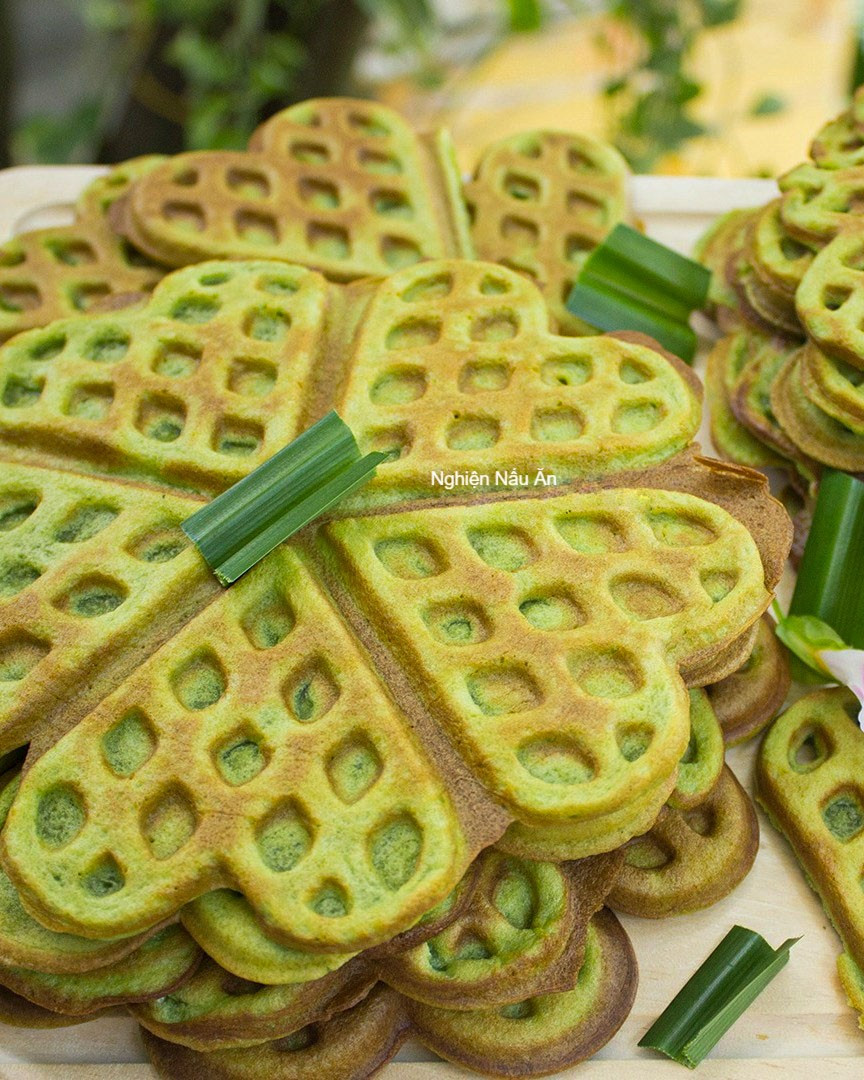 CÔNG THỨC LÀM BÁNH KẸP TÀN ONG LÁ DỨA THƠM NỨC MÙI DỪA, MỀM GIÒN VỪA PHẢI, LÀM CỰC DỄ Nguyên liệu - 270g bột mì đa dụng - 30g bột năng - 8g bột nổi (baking powder) - 6 quả trứng gà - 30g sữa bột - 300ml nước cốt dừa - 120g đường - 30g bơ - 30g dầu ăn - 40ml tinh chất lá dứa Cách làm tinh chất lá dứa (nếu tự làm) - Xay 50g lá dứa với 400ml nước. - Lọc qua rây. - Để ngăn mát qua đêm. - Chắt bỏ phần nước trong phía trên, giữ lại phần tinh chất đậm đặc phía dưới. Cách làm bánh kẹp tàn ong lá dứa Trộn bột khô - Rây mịn: bột mì + bột năng + bột nổi + sữa bột. - Rây kỹ giúp bánh mịn, không bị lợn cợn. Trộn hỗn hợp ướt - Cho vào thau: trứng gà + đường + nước cốt dừa + dầu ăn + bơ tan chảy + tinh chất lá dứa. - Khuấy đều đến khi đường tan hoàn toàn. Kết hợp bột - Đổ phần bột khô vào hỗn hợp ướt. - Khuấy đều đến khi bột mịn, không vón cục. - Lọc lại qua rây để bột thật mượt. Nướng bánh - Làm nóng 2 mặt khuôn bánh kẹp tàn ong. - Thoa một lớp bơ mỏng để chống dính. - Đổ lượng bột vừa phải, tráng nhẹ cho đều mặt khuôn. - Đóng khuôn và nướng 1.5 – 2 phút mỗi mặt. - Lấy bánh ra, đặt lên mặt phẳng thoáng khí để giữ độ giòn. Thành phẩm - Bánh xanh nhẹ màu lá dứa, thơm nức mùi dừa bơ lá dứa. - Mặt bánh có hoa văn tàn ong đẹp mắt. - Ăn nóng giòn nhẹ, để nguội thì mềm dai rất cuốn. - Hợp ăn sáng, ăn vặt hoặc làm quà biếu. Chúc cả nhà thành công với cách làm trên, đừng quên chia sẻ lan toả với mọi người nhé cả nhà.