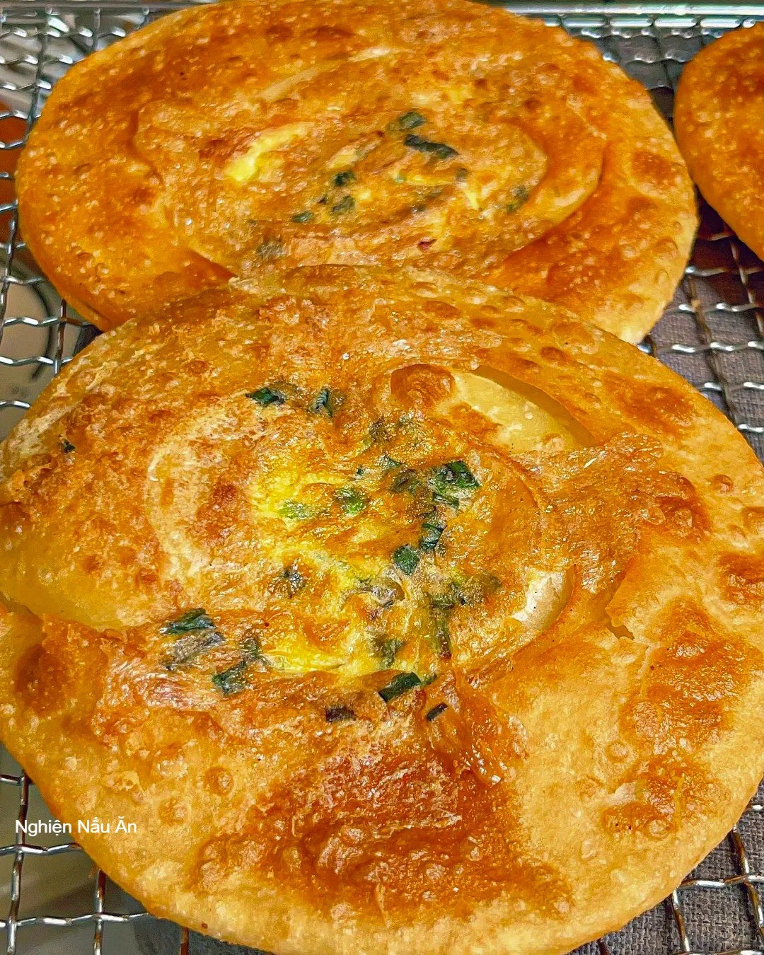 CÔNG THỨC LÀM BÁNH KẾP TRỨNG GIÒN THƠM NGON TUYỆT VỜI CHỈ VÀI CÁCH LÀM ĐƠN GIẢN. Nguyên liệu - Bột bánh: - 300g bột mì - 3g muối - 90g nước sôi - 90g nước lạnh - Hỗn hợp dầu: - 30g bột mì - 30g dầu ăn - Muối & tiêu vừa đủ - Nước trứng: - Trứng gà - Hành lá thái nhỏ - Muối vừa đủ Cách làm chi tiết Trộn bột - Trộn bột mì + muối, chia làm 2 phần. - Một phần trộn với 90g nước sôi, phần còn lại trộn với 90g nước lạnh. - Gom hai phần lại, nhào thành khối bột mịn, đậy kín và để nghỉ 10 phút. - Nhào lại lần nữa cho đến khi bột thật mịn. Chia bột & ủ - Chia bột thành 4 phần bằng nhau. - Bọc kín bằng màng bọc thực phẩm. - Ủ 1 giờ để bột thư giãn, dễ cán hơn. - Trong lúc này, chuẩn bị hỗn hợp dầu và nước trứng. Cán bột & cuộn lớp - Cán từng phần bột thành hình chữ nhật. - Phết đều hỗn hợp dầu lên mặt bột. - Gấp đôi lại → cuộn tròn một đầu → ấn nhẹ để dán kín mép. - Bọc lại và để nghỉ 10 phút. Cán lần cuối - Cán từng cuộn bột thành hình tròn, không quá mỏng. - Giữ một lỗ hở nhỏ ở giữa để đổ trứng sau này. Chiên bánh - Cho nhiều dầu vào chảo. - Đặt bánh vào mặt có lỗ hướng xuống dưới, chiên đến khi vàng nâu giòn rụm. - Lật mặt còn lại chiên tiếp. - Khi bánh đã giòn, mở phần lỗ và đổ nước trứng vào. - Chiên đến khi trứng đông lại. Nướng giòn - Cho bánh đã chiên vào lò, nướng 190°C 5 phút để vỏ giòn hơn và thơm như bánh nướng lò. Thành phẩm - Vỏ bánh giòn tan, lớp trong mềm dai. - Trứng thơm, hành lá dậy mùi, ăn không cũng ngon. - Có thể kẹp thêm rau củ, thịt, xúc xích, kim chi để thành bữa sáng siêu hấp dẫn. - Mùi thơm lan khắp bếp, ăn một cái là muốn làm thêm ngay. Chúc cả nhà thành công với cách làm trên, đừng quên chia sẻ công thức đến nhiều người biết đến hơn nhé cả nhà.