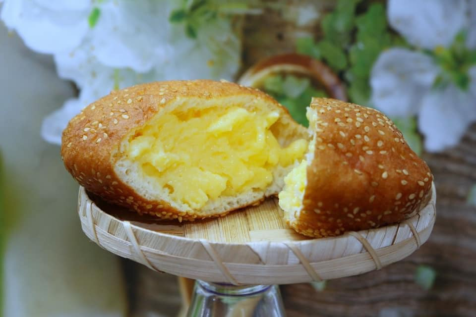 Công thức làm bánh tiêu nhân trứng sữa 200ml nước cốt dừa 60g đường 20g sữa đặc 2 cái lòng đỏ trứng gà 40g bột tàn mì 5g bơ lạt 1/4 muỗng cà phê vani 110ml Sữa tươi không đường 1 muỗng cà phê dầu ăn 1 muỗng cà phê men nở 10g mè trắng 200g bột mì đa dụng hoặc bột mì số 11 Cách làm bánh tiêu nhân sữa trứng Bước 1️: Làm nhân cade - Bắc nồi lên bếp, cho vào 200ml nước cốt dừa, 30g đường, 20ml sữa đặc. Khuấy đều đến khi hỗn hợp ấm nóng, không sôi thì tắt bếp. - Cho vào tô 2 lòng đỏ trứng gà, hỗn hợp nước cốt dừa, ¼ muỗng cà phê vani, 40g bột tàn mì đã rây mịn và khuấy đều. - Lọc vào nồi hỗn hợp trên, sau đó khuấy đều trên lửa nhỏ đến khi hỗn hợp đặc sệt lại thì tắt bếp. - Cuối cùng cho thêm 5g bơ lạt khuấy đều đến khi bơ tan, để nguội hỗn hợp. - Mách nhỏ: Hỗn hợp nước cốt dừa lúc này không được để quá nóng, sẽ làm trứng chín và gây ra hiện tượng lợn cợn. Ngoài ra, cũng không nên để hỗn hợp quá nguội Bước 2️: Kích men nở - Cho vào nồi 110ml sữa tươi không đường, 30g đường rồi khuấy đều đến khi đường tan, hỗn hợp ấm nóng, không sôi. - Cho vào tô hỗn hợp sữa đường, 1 muỗng cà phê dầu ăn, 1 muỗng cà phê men nở rồi khuấy đều. Sau đó, bạn để yên 5 phút đến khi thấy hỗn hợp nở như gạch cua. Bước 3️: Trộn bột - Cho vào tô 200g bột mì rây mịn, hỗn hợp men rồi trộn đều đến khi bột tạo thành khối. Sau đó để bột nghỉ 15p Bước 4️: Nhào bột: Dùng tay nhào bột đến khi bột mịn, tạo thành khối, không dính tay là đạt. Bước 5️: Ủ bột - Thoa bột bằng 1 ít dầu ăn, sau đó cho vào tô. Dùng dĩa hoặc màng bọc thực phẩm bọc kín tô bột lại, ủ đến khi bột nở gấp đôi. - Mách nhỏ: Thời gian ủ bột sẽ còn tùy thuộc vào nhiệt độ ủ. Nhiệt đô ủ lý tưởng thông thường sẽ từ 20 - 37 độ C, nếu cao hơn sẽ làm men phản ứng chậm. Bước 6️: Tạo hình bánh - Nhồi sơ bột trong 1 phút, sau đó chia bột thành nhiều phần bằng nhau rồi vo tròn. - Cán dẹt từng viên bột, cho nhân cade vào giữa rồi xếp 2 mép bánh lại hoặc vo tròn. - Lăn đều bánh qua mè, để nghỉ 10 phút trước khi chiên. Bước 7️: Chiên bánh - Bắc chảo lên bếp, khi dầu bắt đầu sôi thì thả bánh vào chiên ngập dầu đến khi vỏ bánh có màu nâu sậm. - Để giữ được lớp mè trên bánh không bị rớt ra, bạn nên cho bánh vào lúc dầu hơi sôi, nhiệt độ không quá cao.