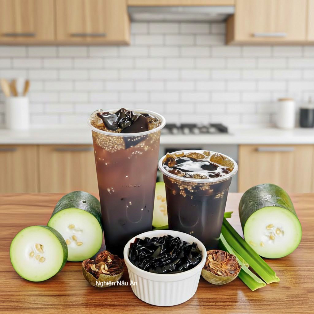 CÔNG THỨC NẤU TRÀ SÂM BÍ ĐAO HẠT CHIA THANH MÁT, GIẢI NHIỆT CỰC KỲ DỄ NẤU. 1. Sơ chế nguyên liệu ( Set nguyên liệu mình để bên dưới nhé ) - Đập tách la hán quả, cắt nhỏ thục địa. - Ngâm toàn bộ nguyên liệu (trừ hạt chia) 30 phút, sau đó rửa sạch. - Rang bí đao đến khi xém cạnh để tăng hương thơm khi nấu. 2. Nấu nước trà sâm bí đao - Đun sôi 5–8 lít nước. - Cho vào nồi tất cả nguyên liệu (trừ hạt chia, táo đỏ, kỷ tử, nhãn nhục, đường phèn). - Nấu 30 phút ở lửa vừa. - Tắt bếp và ủ 1 tiếng để chiết tối đa hương vị. 3. Lọc nước hoàn thiện hương vị - Vớt bỏ toàn bộ nguyên liệu đã nấu. - Cho táo đỏ kỷ tử nhãn nhục đường phèn vào nấu thêm 15 phút. - Cuối cùng cho hạt chia vào, khuấy đều. (Tùy chọn) Làm sương sáo ăn kèm chuẩn kết cấu 1. Ngâm bột sương - Hòa tan bột sương với 300ml nước, ngâm 30 phút. 2. Nấu sương sáo - Đun 700ml nước với 100g đường đến khi tan hoàn toàn. - Đổ hỗn hợp bột sương đã ngâm vào, khuấy liên tục đến khi sôi. - Tắt bếp, đổ ra khuôn và để nguội. 3. Làm lạnh tạo hình - Cho vào ngăn mát 3–4 tiếng. - Lấy ra cắt thành miếng vừa ăn. Thành phẩm đạt chuẩn chuyên nghiệp - Nước trà trong ngọt thanh thơm tự nhiên từ la hán quả và bí đao - Hương vị cân bằng, không gắt, không chát - Hạt chia nở đều, không vón - Sương sáo mềm dai nhẹ mát lạnh, ăn kèm cực hợp Chúc cả nhà thành công với cách làm trên, đừng quên chia sẻ công thức đến nhiều người biết đến hơn nhé cả nhà.
