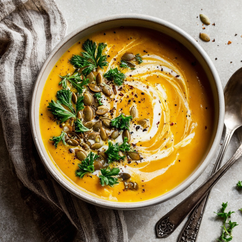 Creamy Vegan Butternut Soup with Cashew Swirl