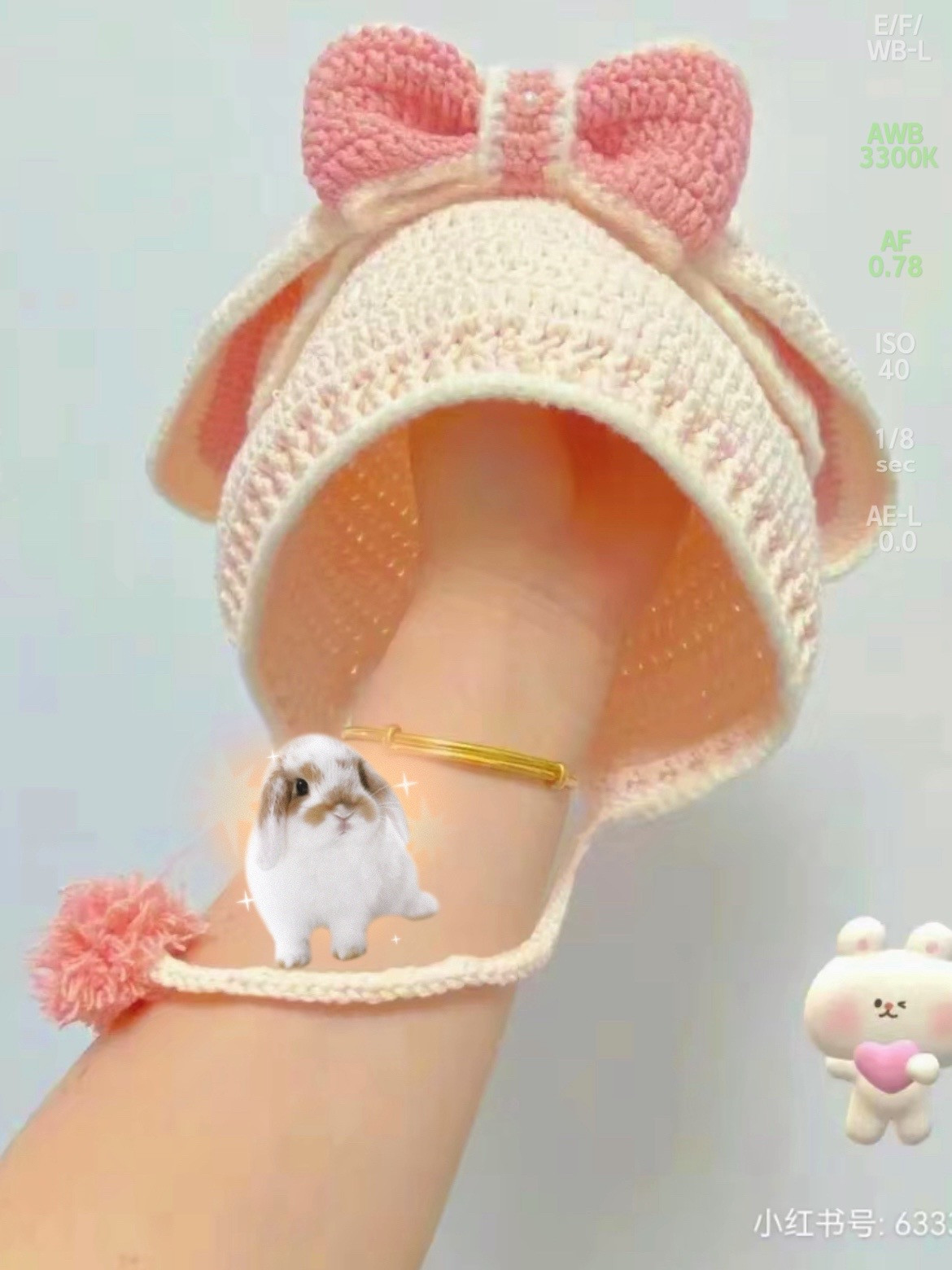 Crochet Baby Hat with Pink Bow and Pom-Pom Tail