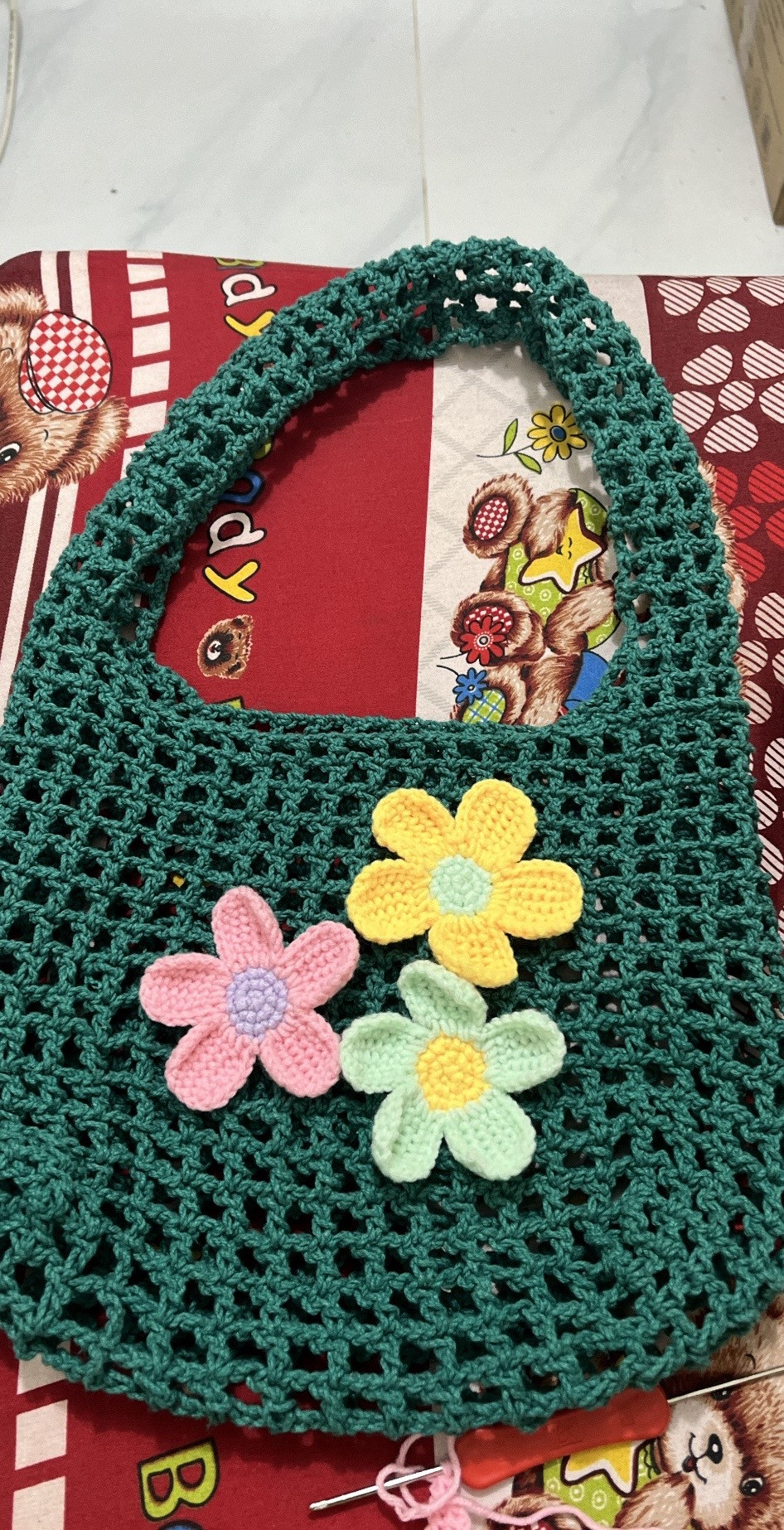 Crochet Bag with Colorful Flower Embellishments Pattern
