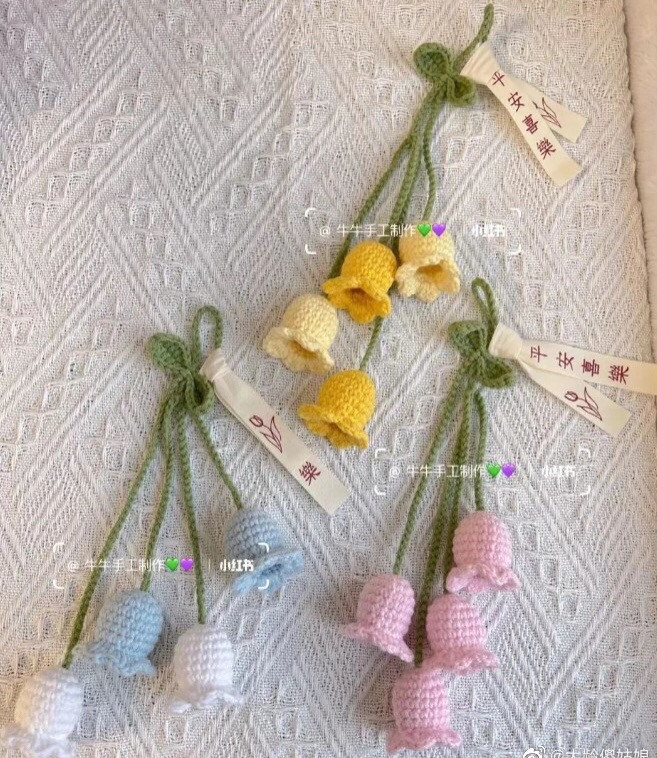 Crochet Bellflower Pattern with Pastel Colors and Green Stems
