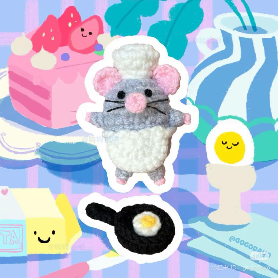 Crochet Chef Mouse with Breakfast Set Pattern Design