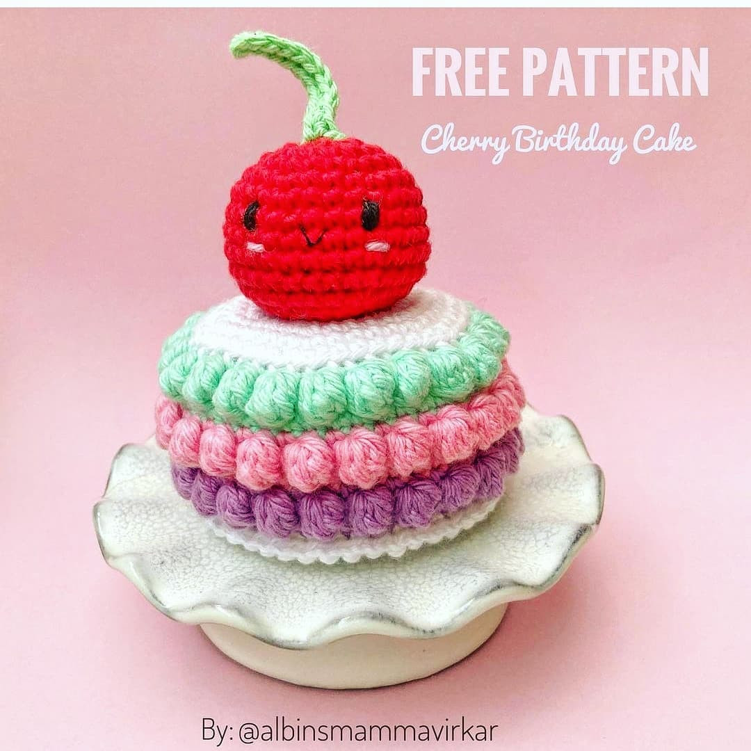 Crochet Cherry Birthday Cake Pattern for Celebrations
