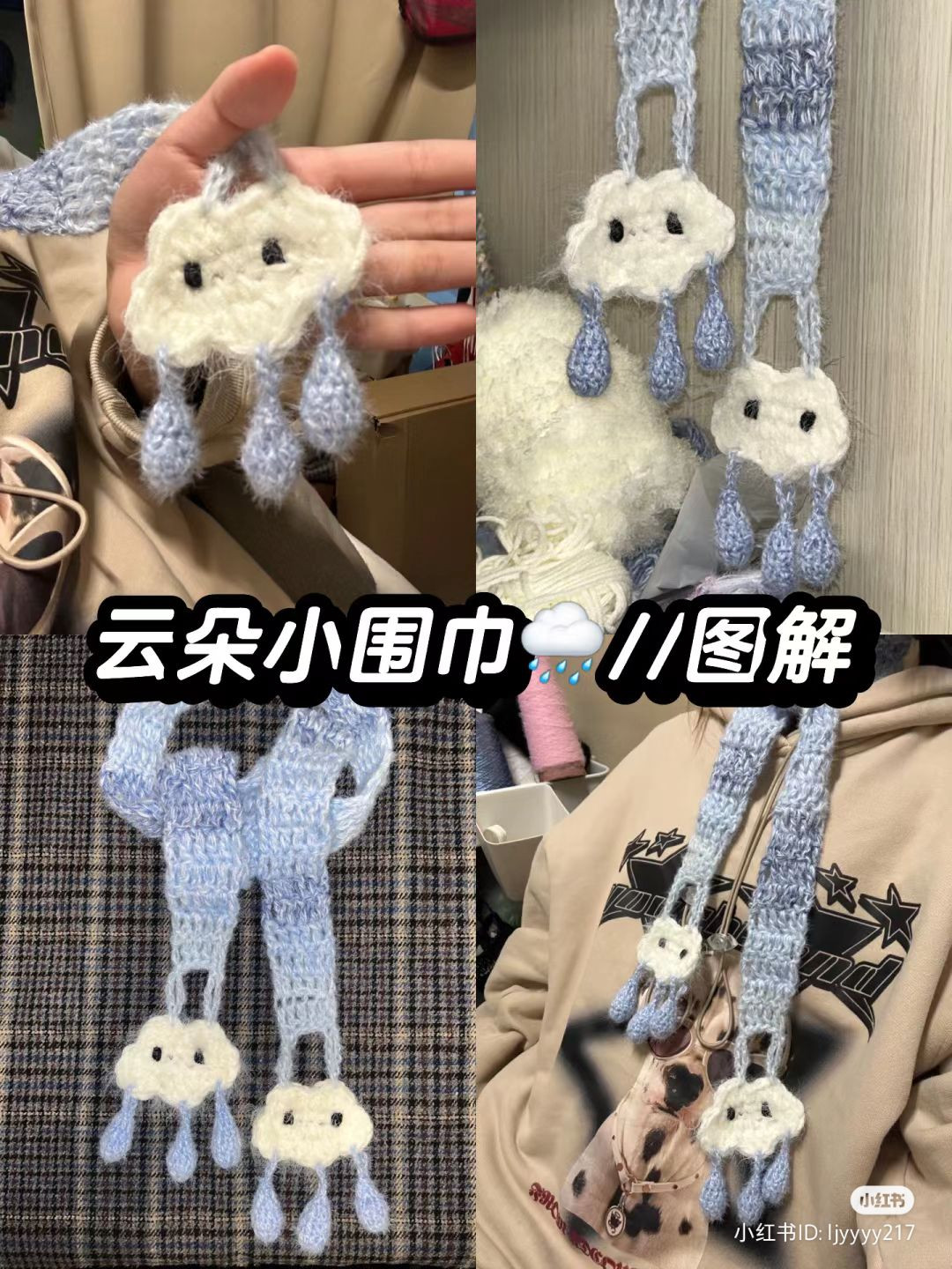 Crochet Cloud Scarf with Raindrop Details for Cozy Days