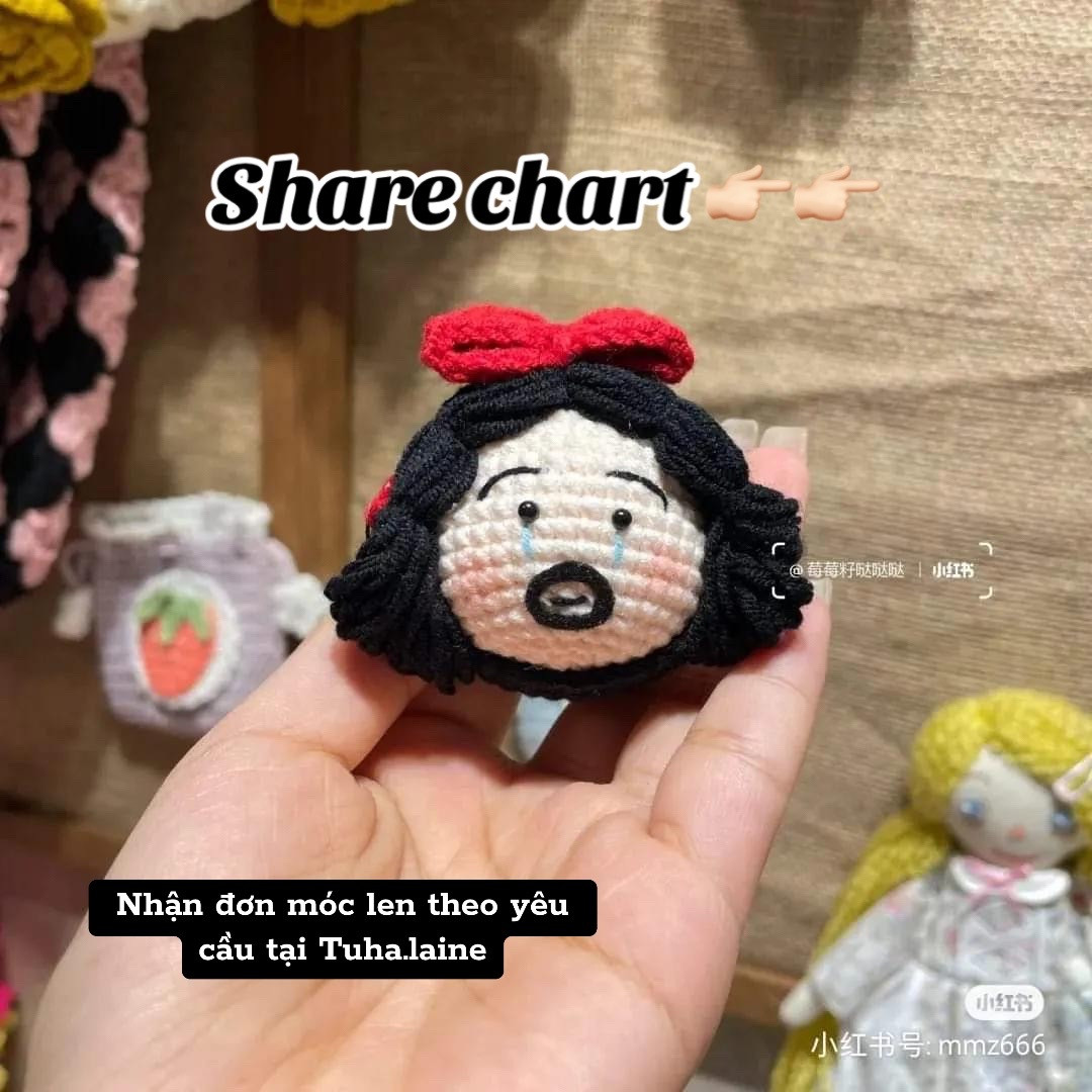 Crochet Cute Doll Pattern with Red Bow and Black Hair