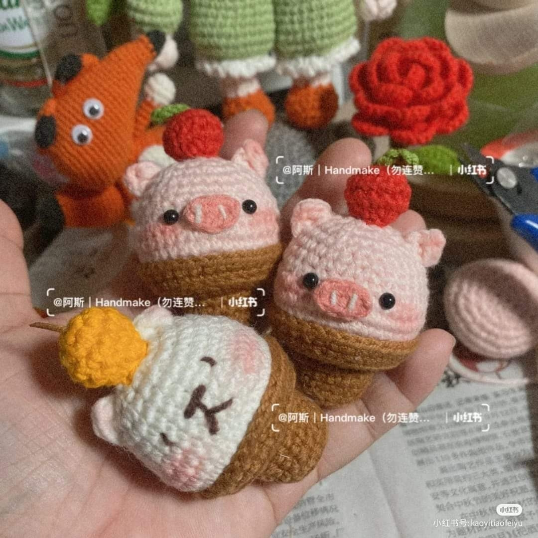 Crochet Cute Pig and Ice Cream Keychain Patterns