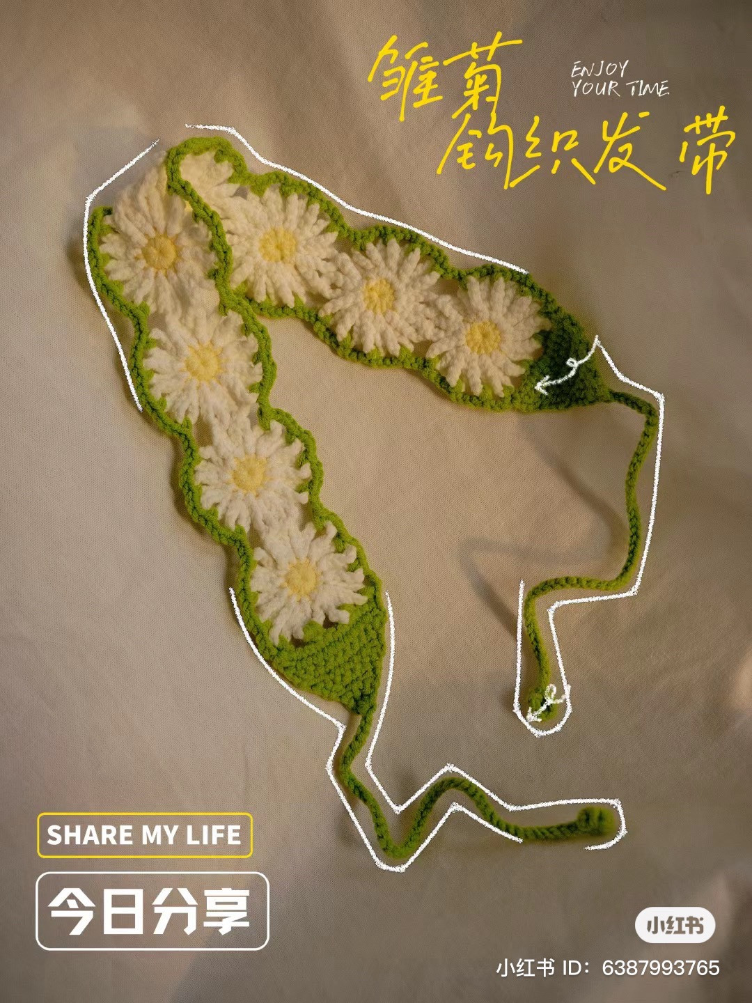 Crochet Daisy Headband Pattern with Green Edging for Beginners