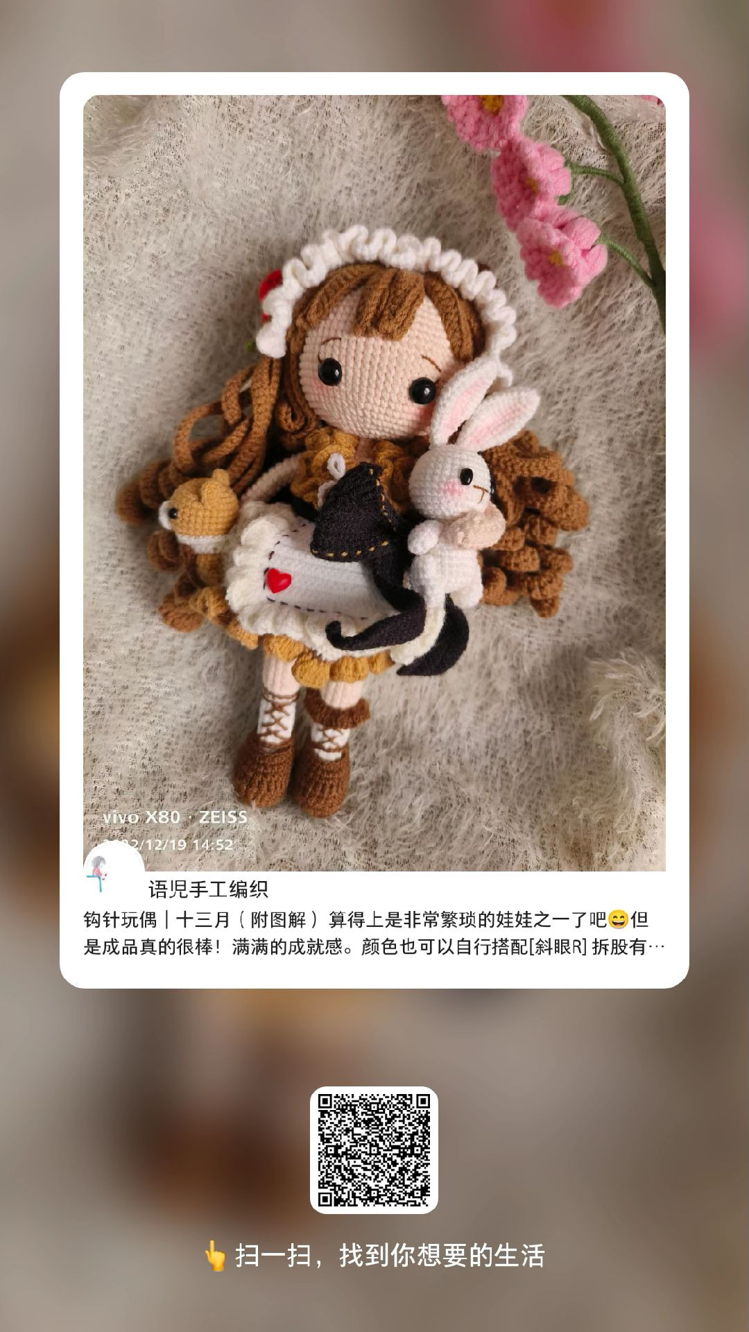 Crochet Doll with Rabbit and Brown Hair