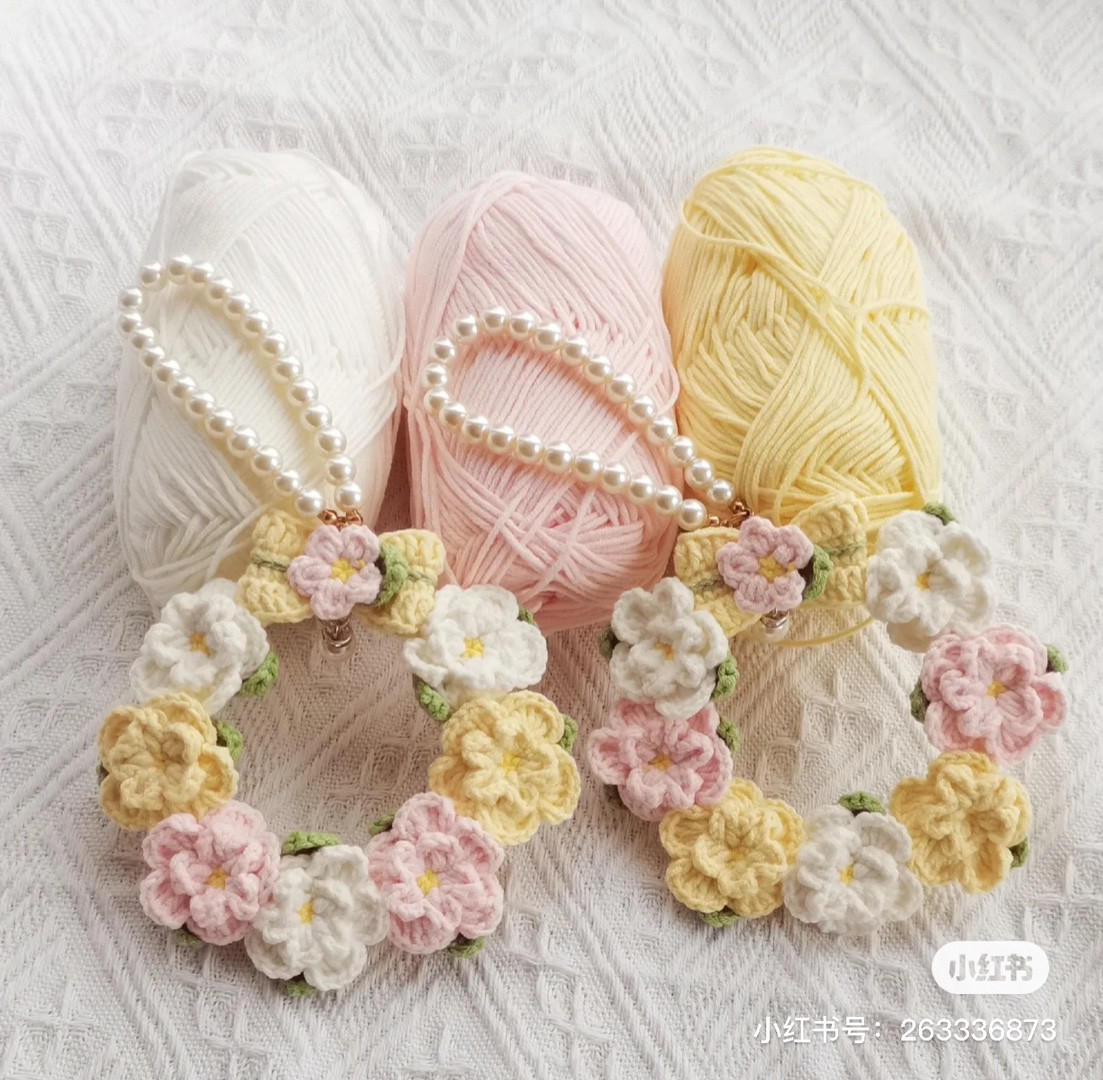 Crochet Floral Wreath Pattern with Pearl Beads