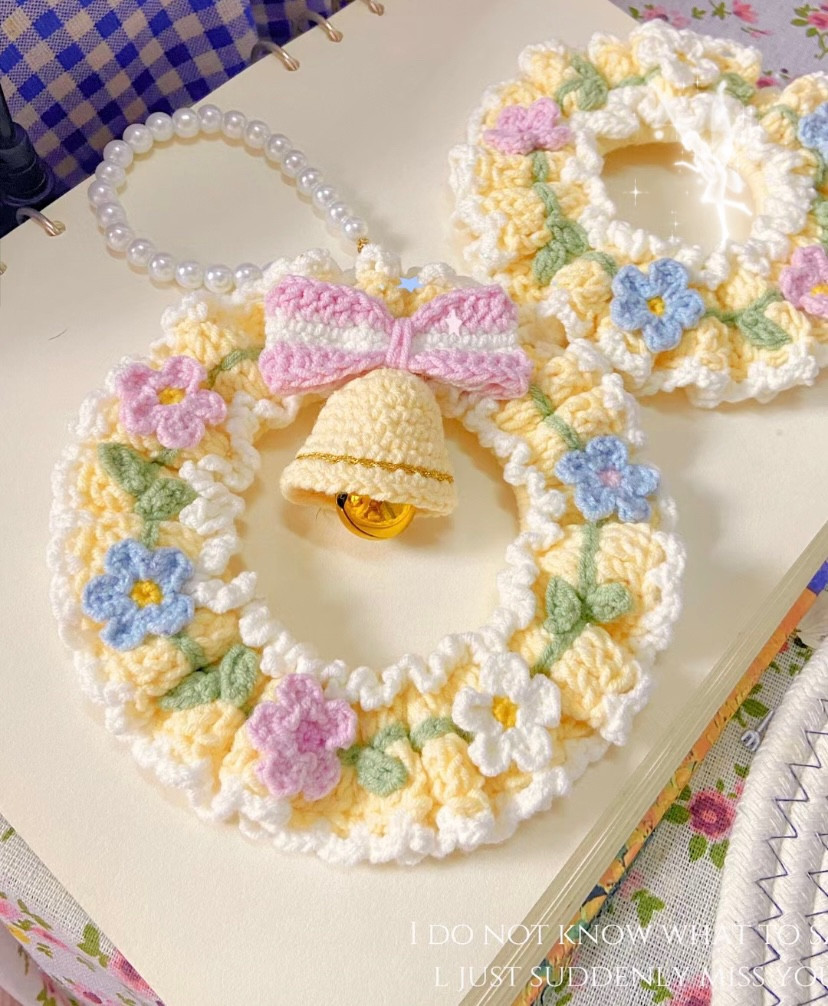 Crochet Floral Wreath with Bell and Bow Decoration