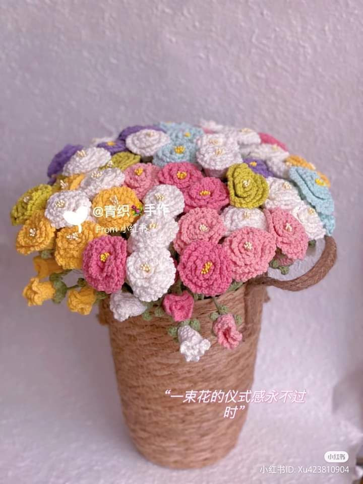 Crochet Flower Bouquet in a Rustic Basket Pattern