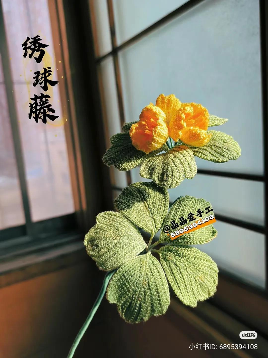 Crochet Flower with Detailed Leaf Pattern in Sunlight