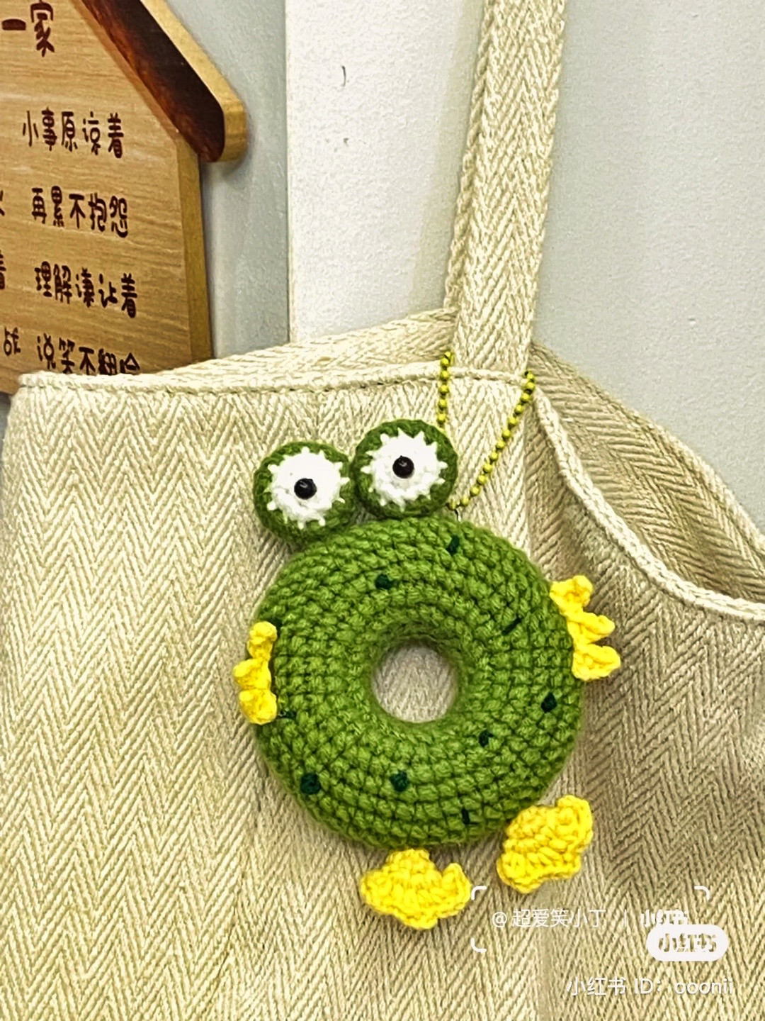 Crochet Frog Donut Keychain with Cute Yellow Feet