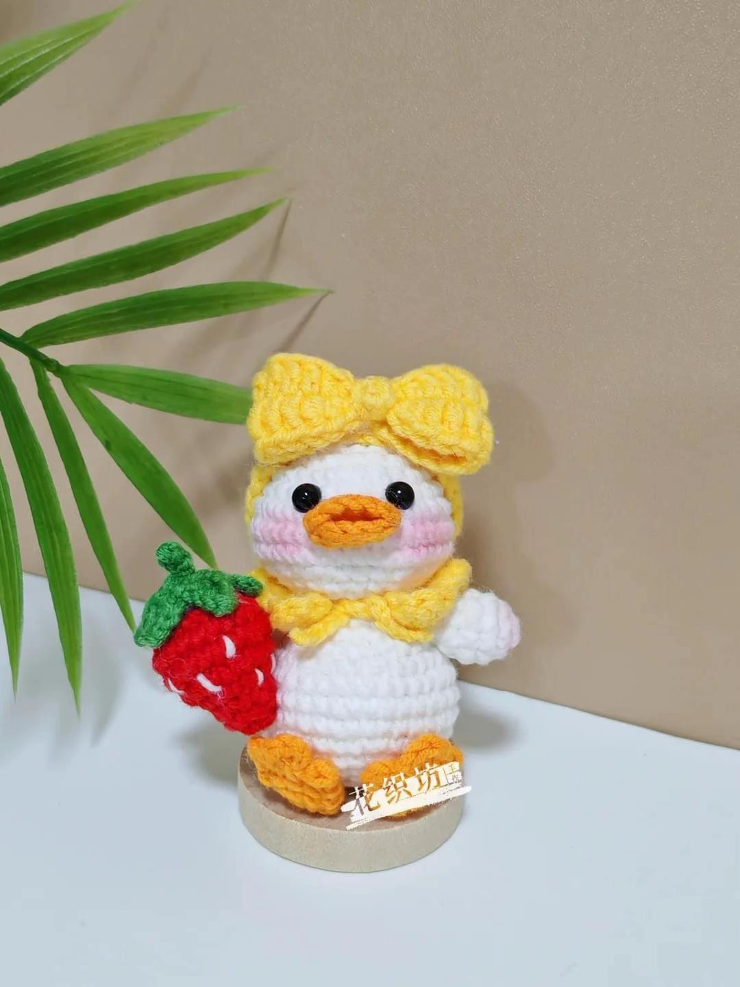 Crochet Pattern: Cute Duck with Strawberry and Yellow Bow