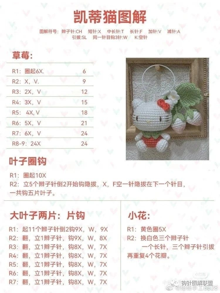 Crochet Pattern: Cute Kitty with Strawberry and Leaf Design