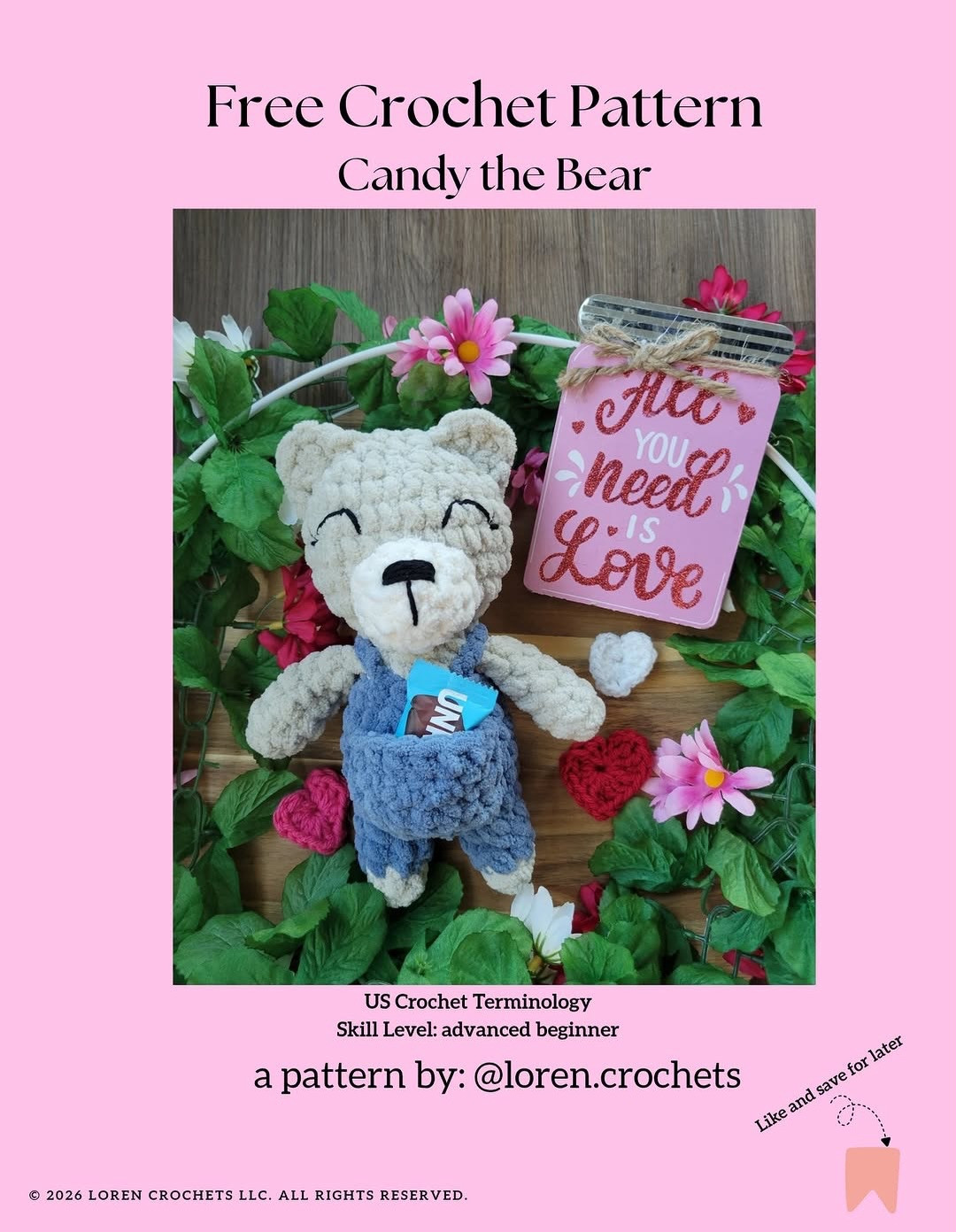 Crochet Pattern for Adorable Bear Plushie with Overalls