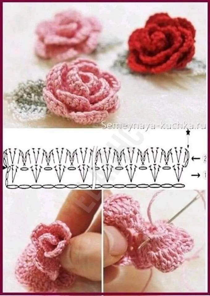 Crochet Pattern for Beautiful 3D Rose Flowers