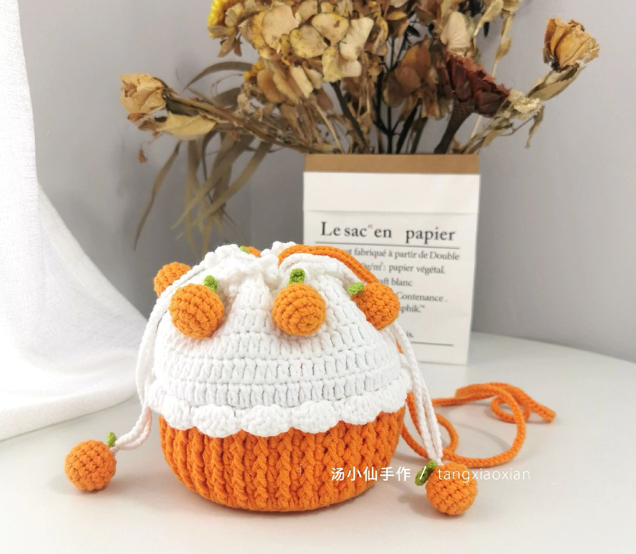 Crochet Pattern for Charming Orange and White Drawstring Bag