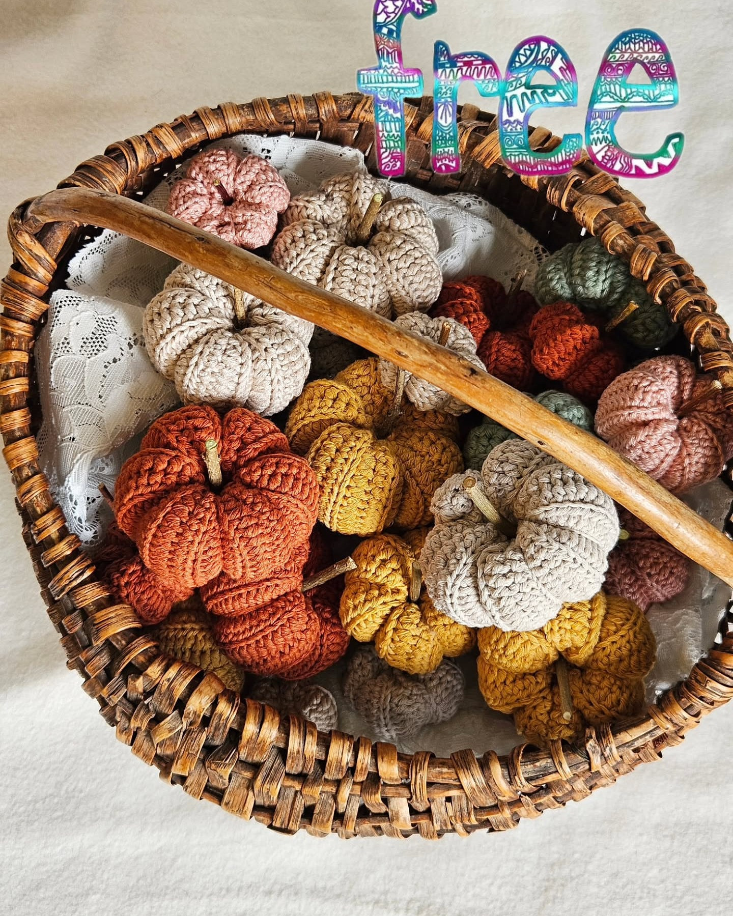 Crochet Pattern for Colorful Autumn Pumpkins in Basket